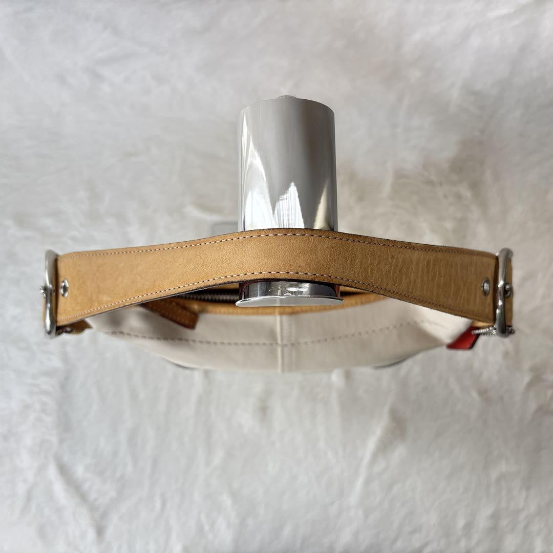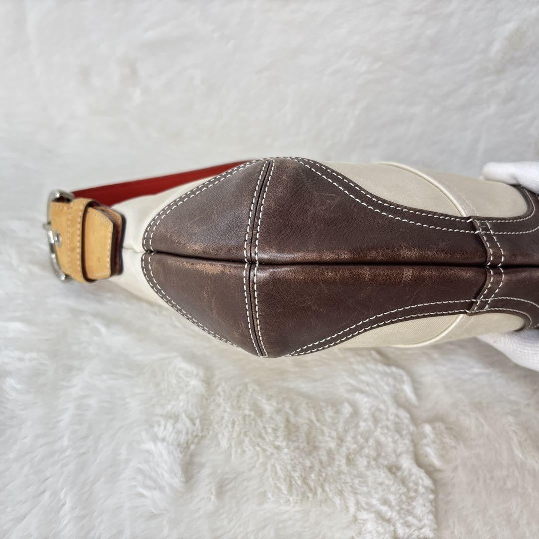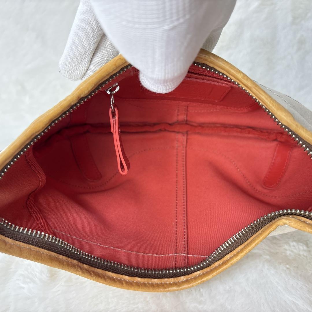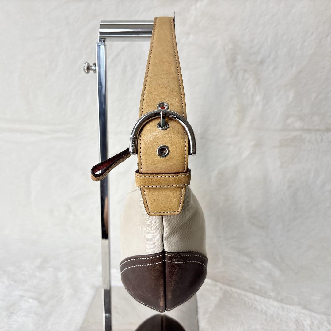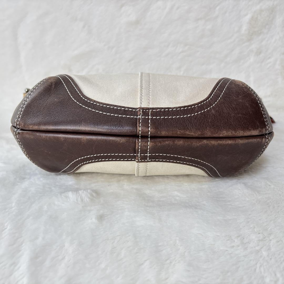 COACH Shoulder Bag Purse Canvas Leather Off White Brown Authentic