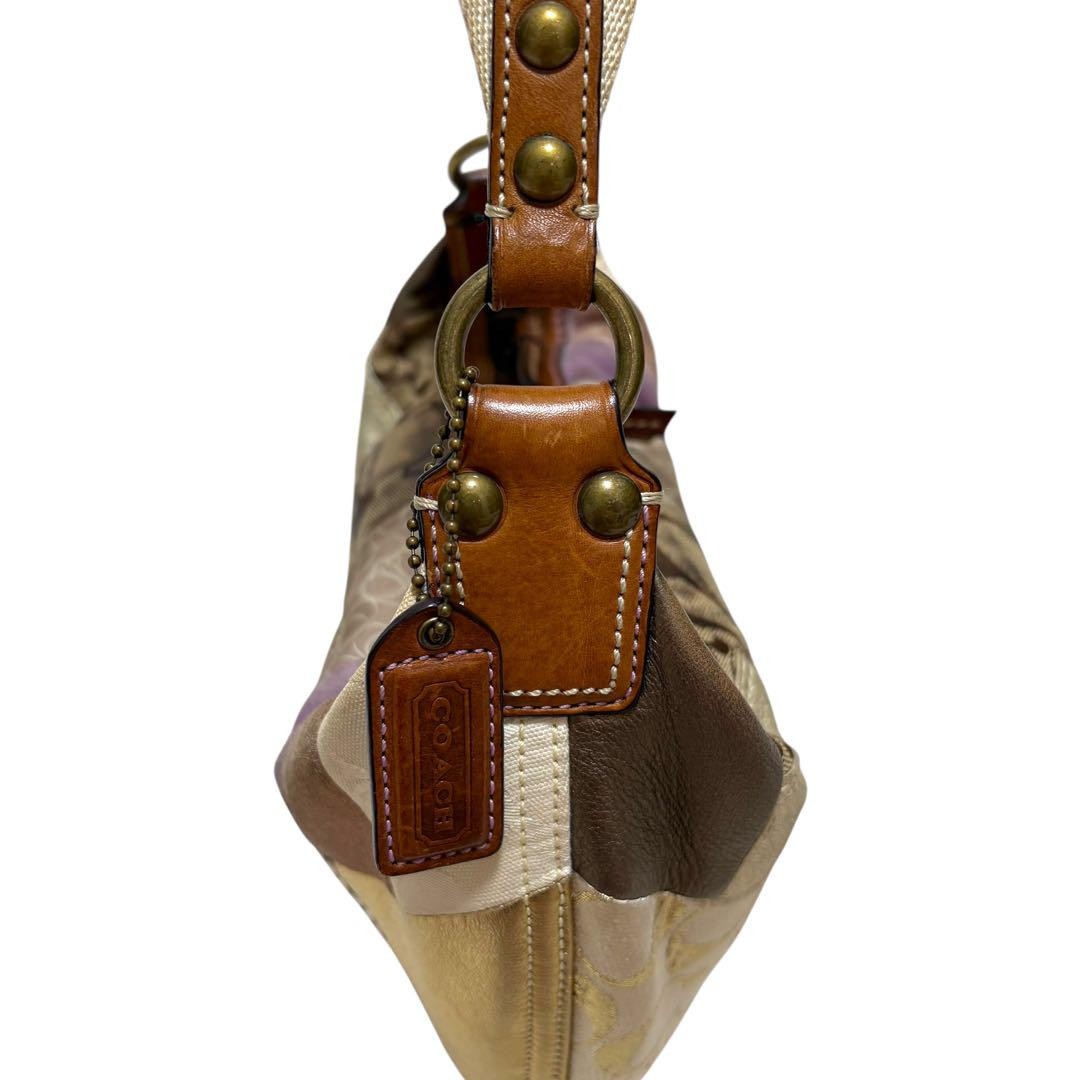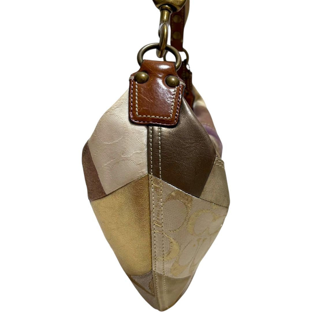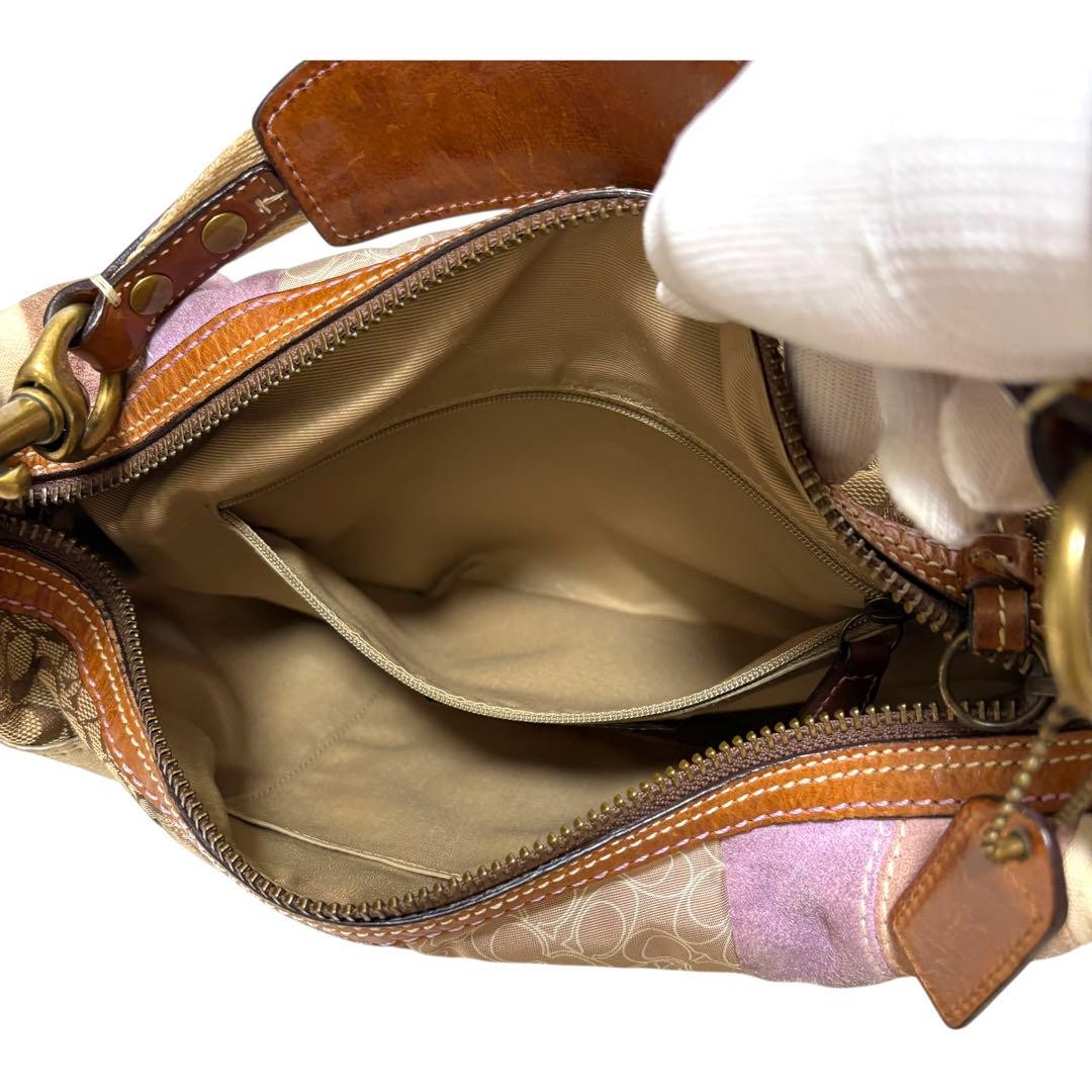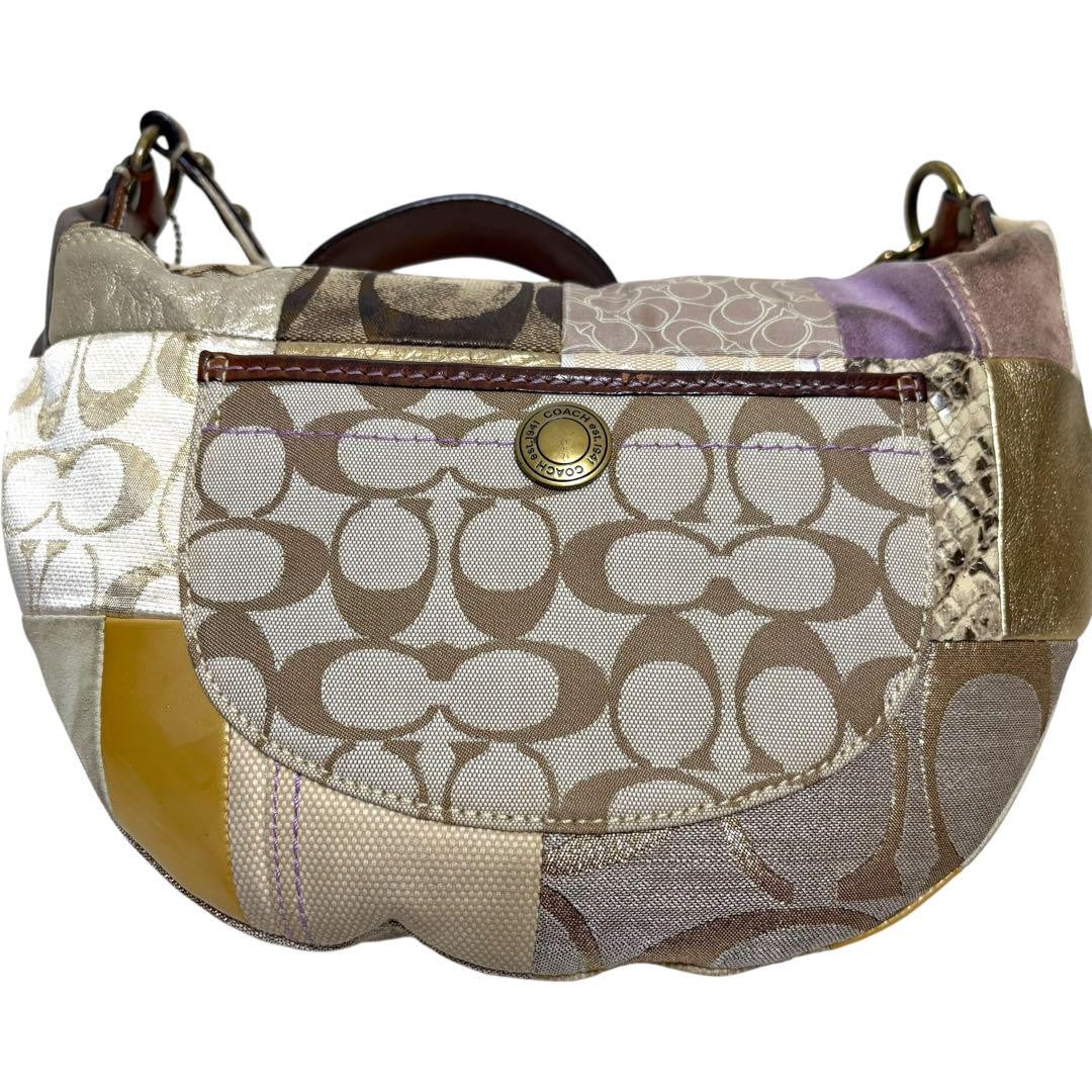 COACH Shoulder Bag Purse Signature 10019 Suede Canvas Brown Authentic