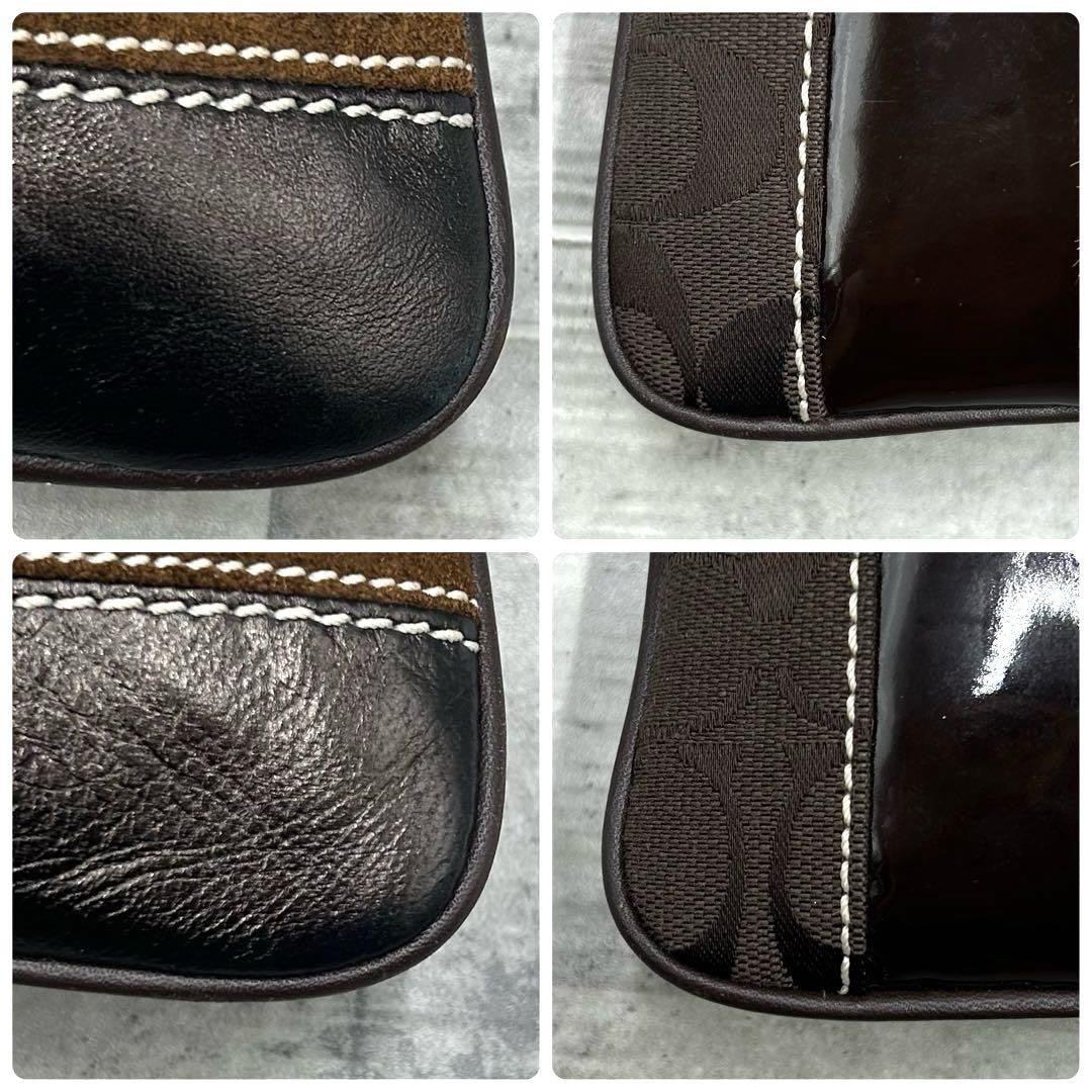 COACH Shoulder Bag Purse Signature 10514 Canvas Leather Brown Purple Gold Auth