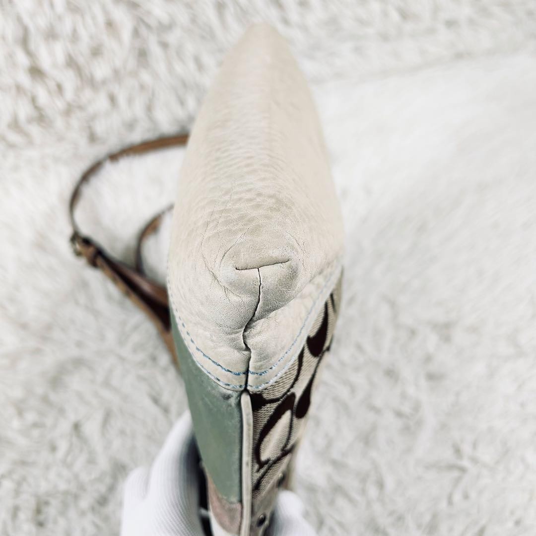 COACH Shoulder Bag Purse Signature 2193 Canvas Leather Beige Authentic