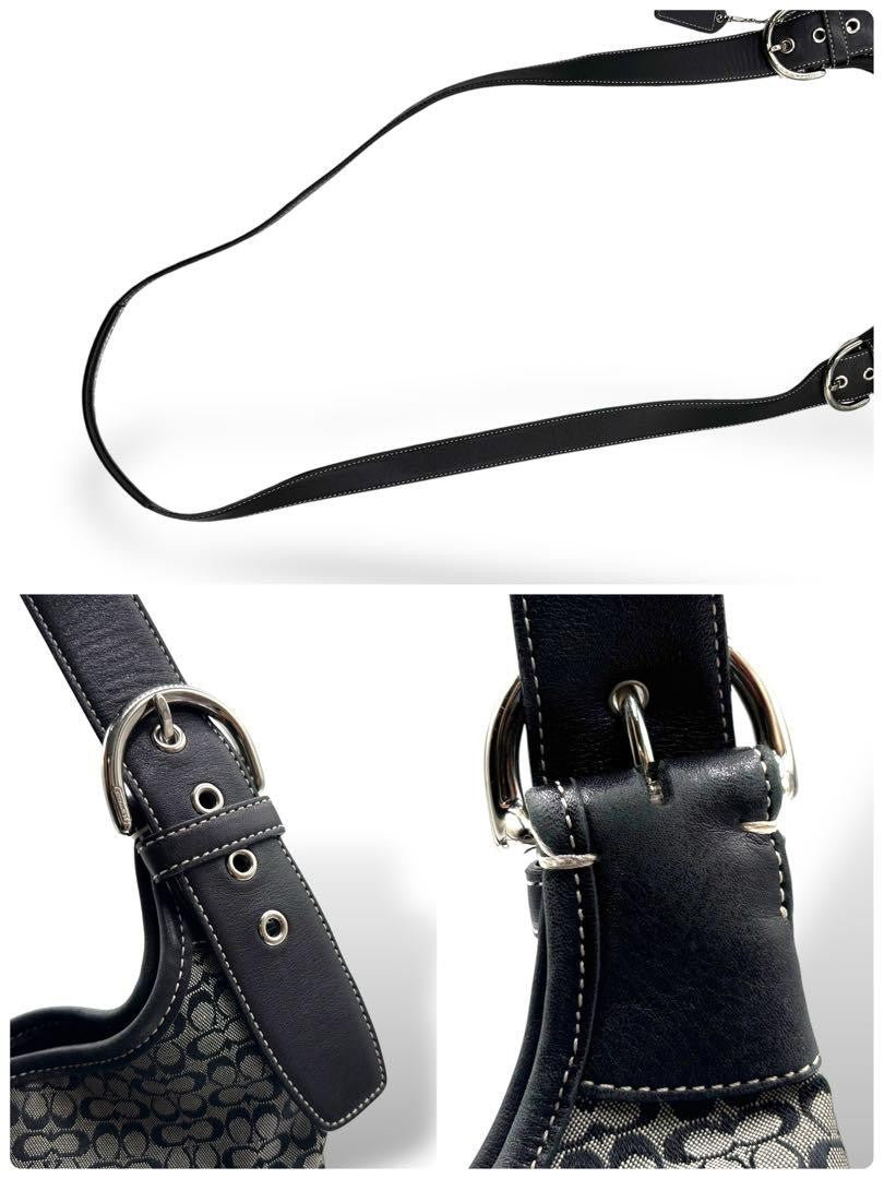 COACH Shoulder Bag Purse Signature 6386 Canvas Leather Black Gray Authentic