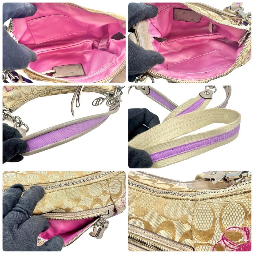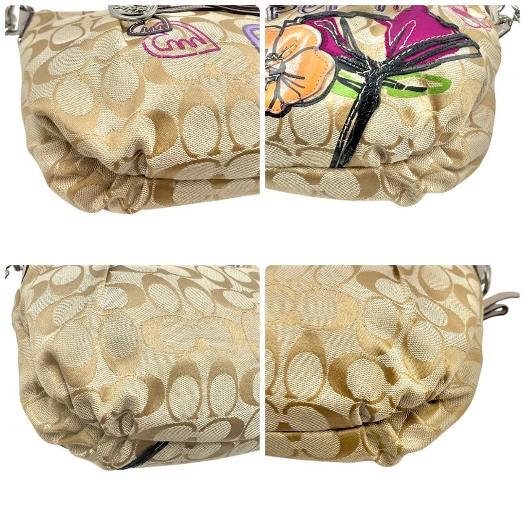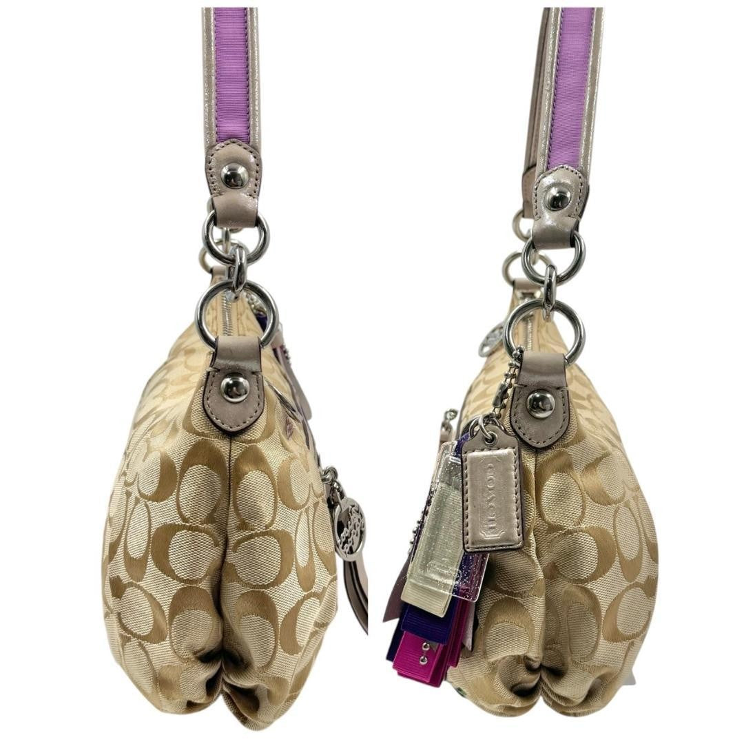 COACH Shoulder Bag Purse Signature Canvas Beige Authentic