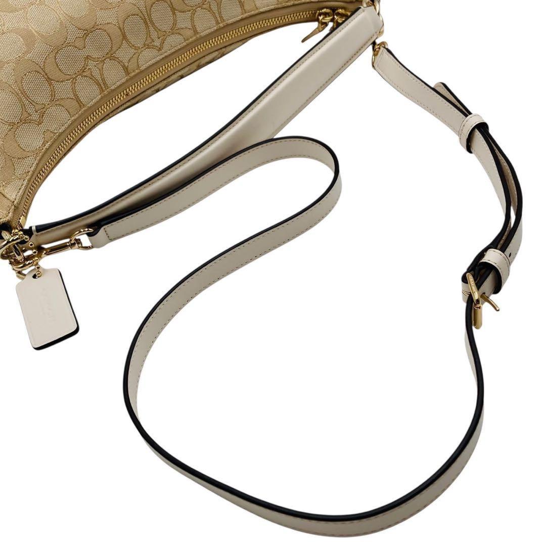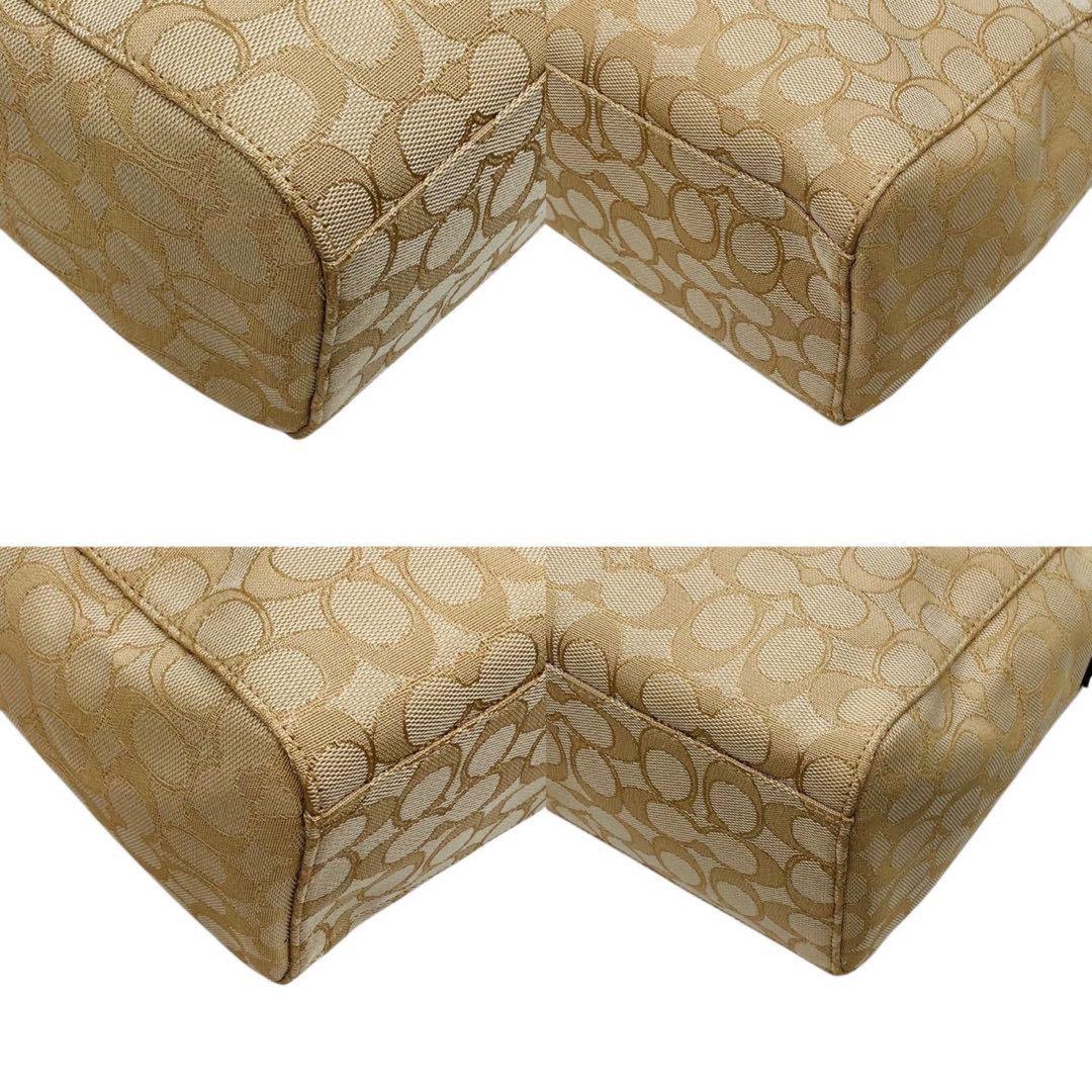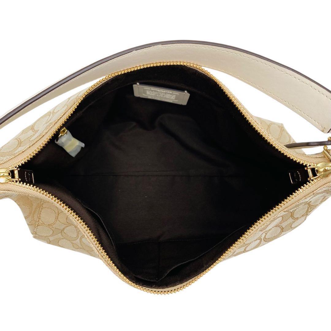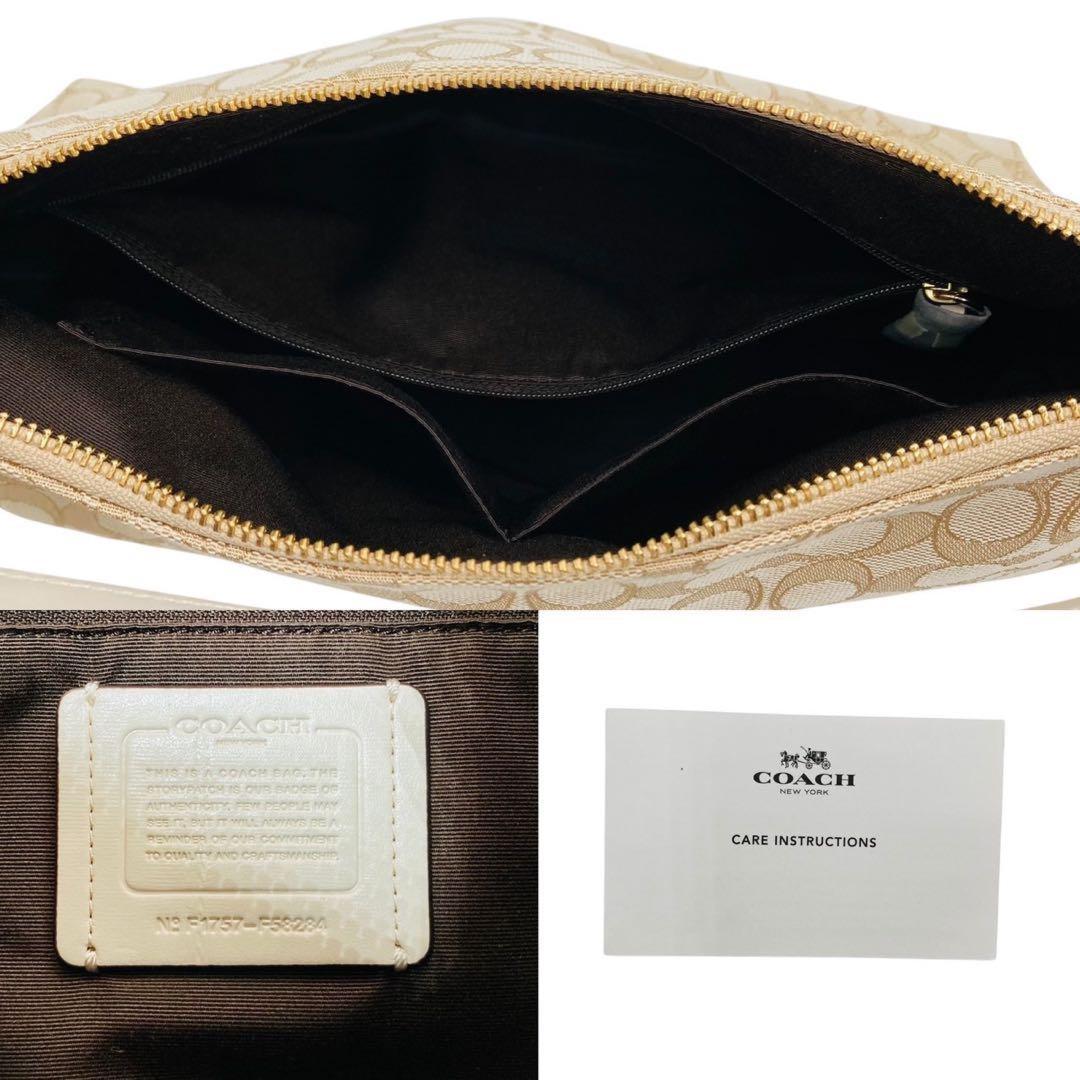 COACH Shoulder Bag Purse Signature Canvas Leather Beige White Authentic