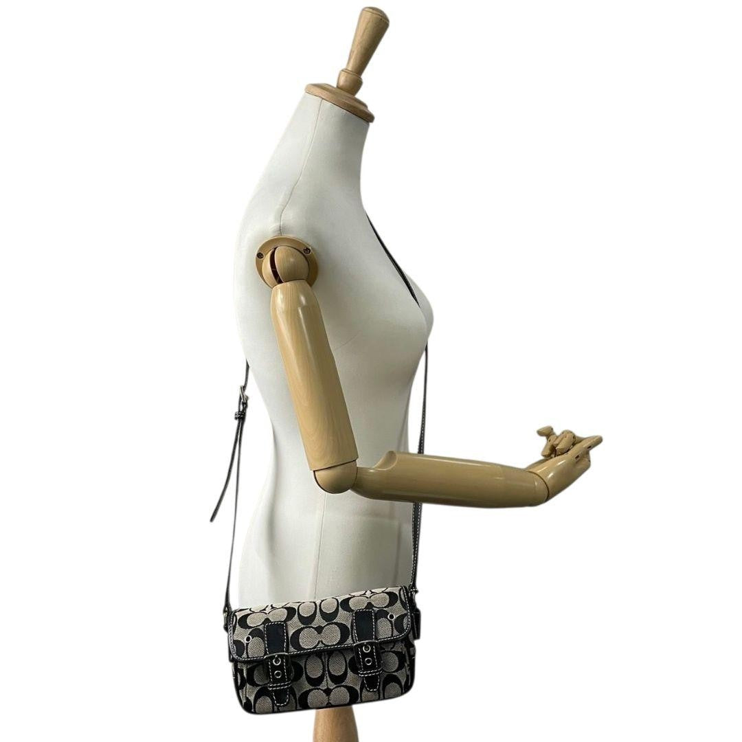 COACH Shoulder Bag Purse Signature Canvas Leather Black Authentic