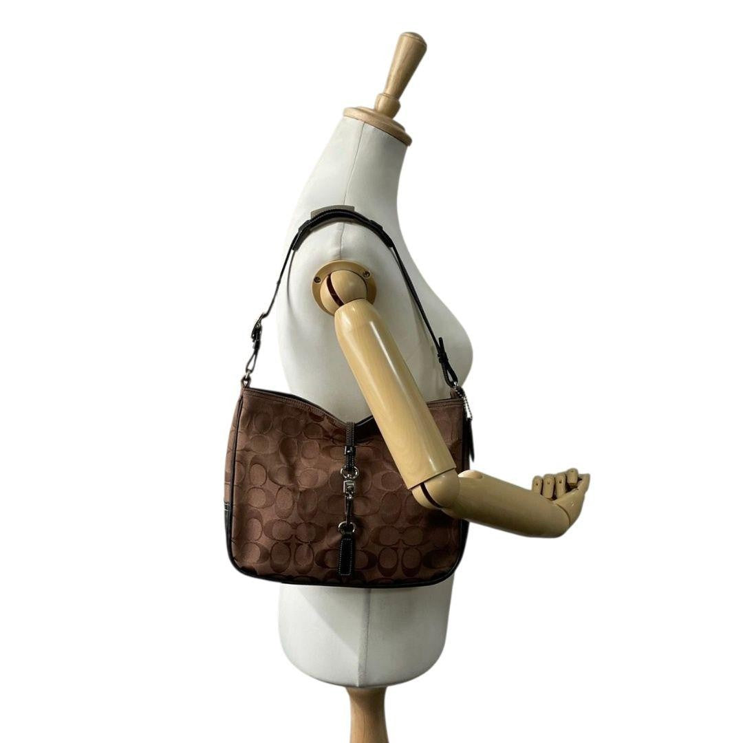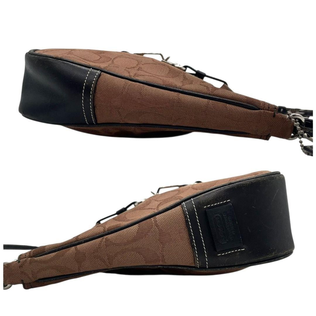 COACH Shoulder Bag Purse Signature Canvas Leather Brown Black Authentic