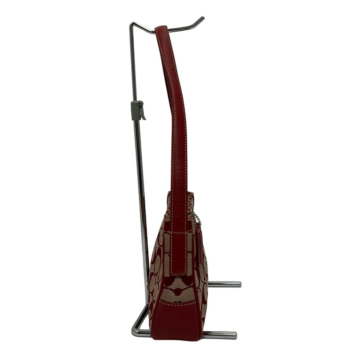 COACH Shoulder Bag Purse Signature Jacquard Leather Bordeaux White Authentic