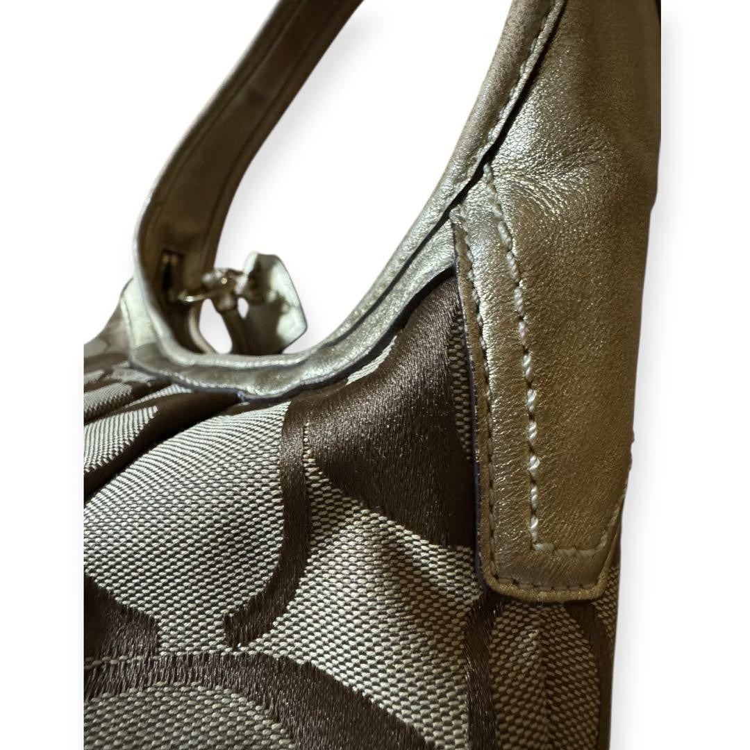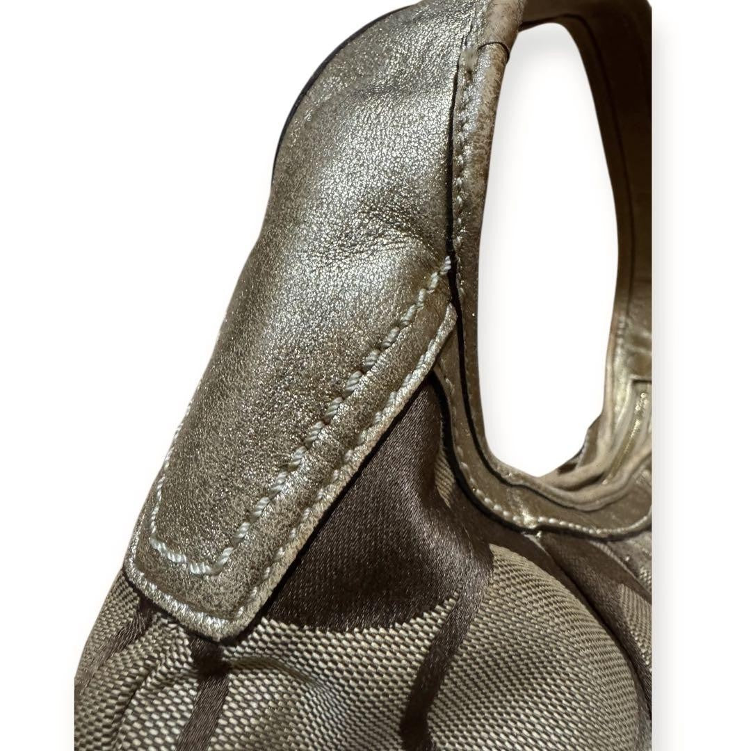 COACH Shoulder Bag Purse Signature Leather Canvas Beige Gold Authentic