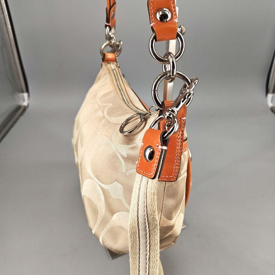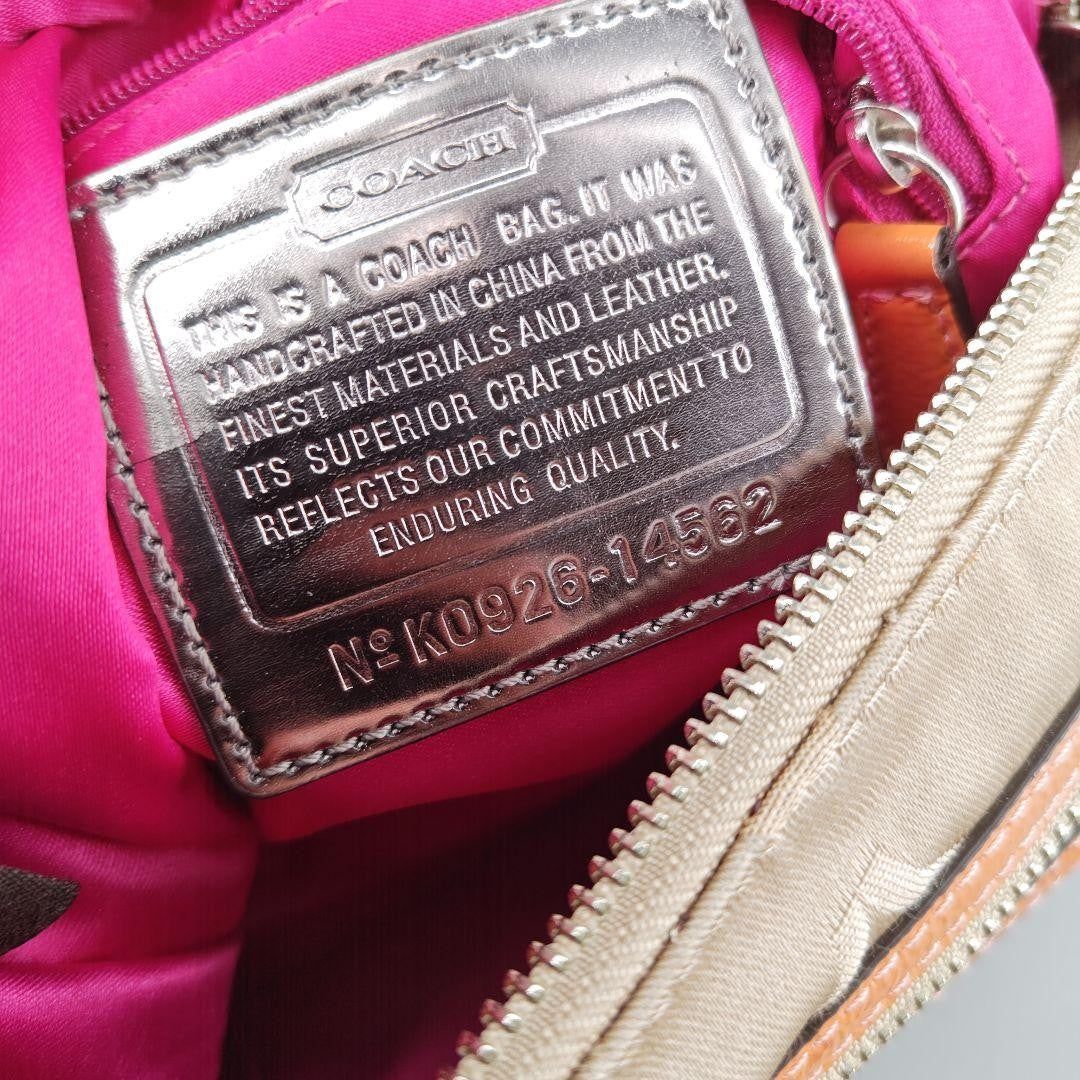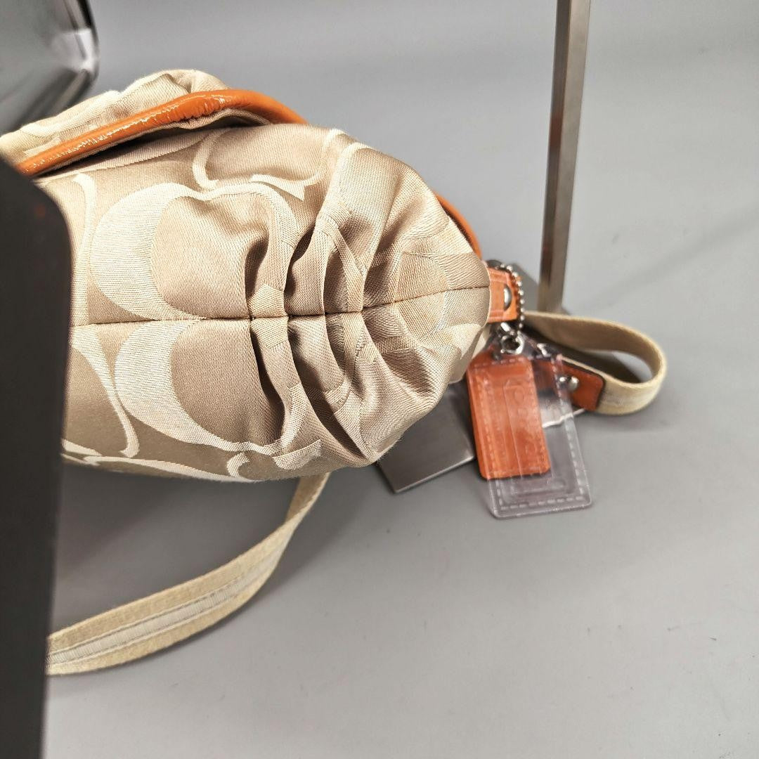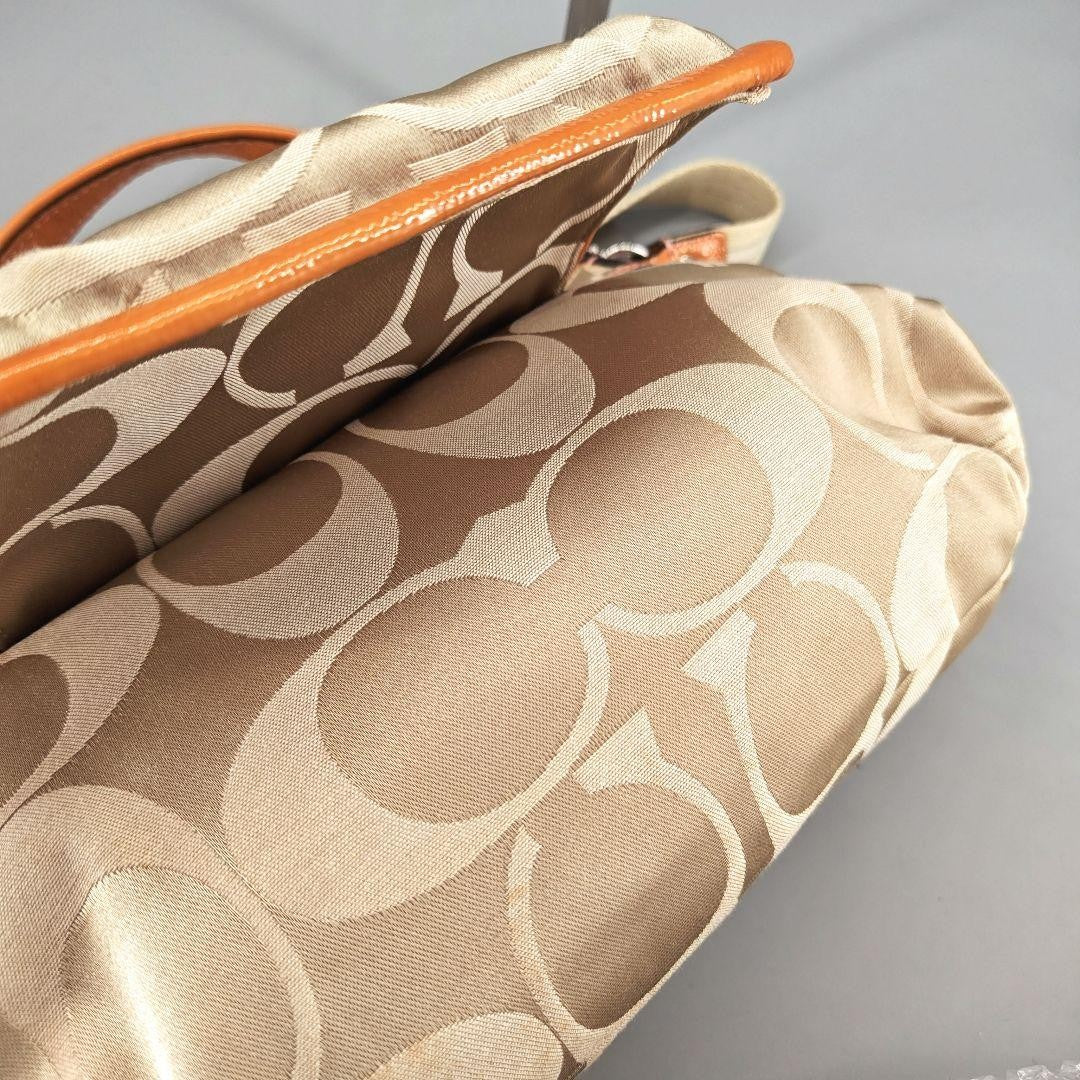 COACH Shoulder Bag Purse Signature Old Canvas Leather Gold Beige Authentic
