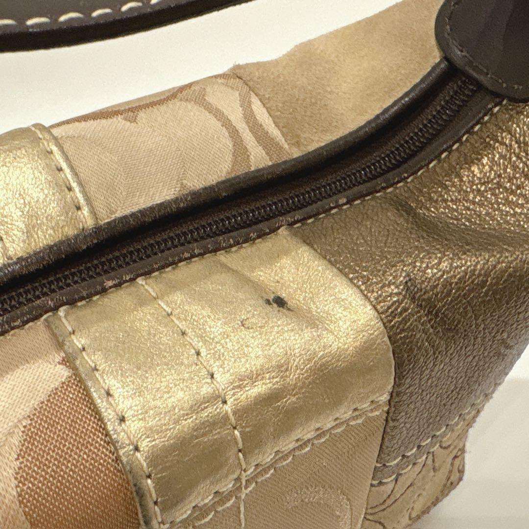 COACH Shoulder Bag Purse Signature Patchwork Leather Suede Jacquard Gold Brown