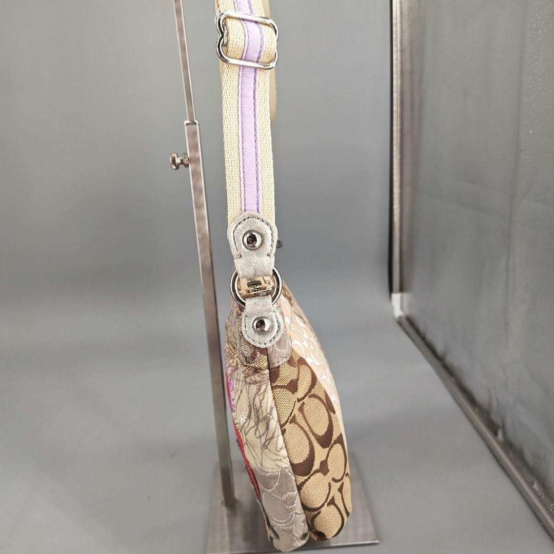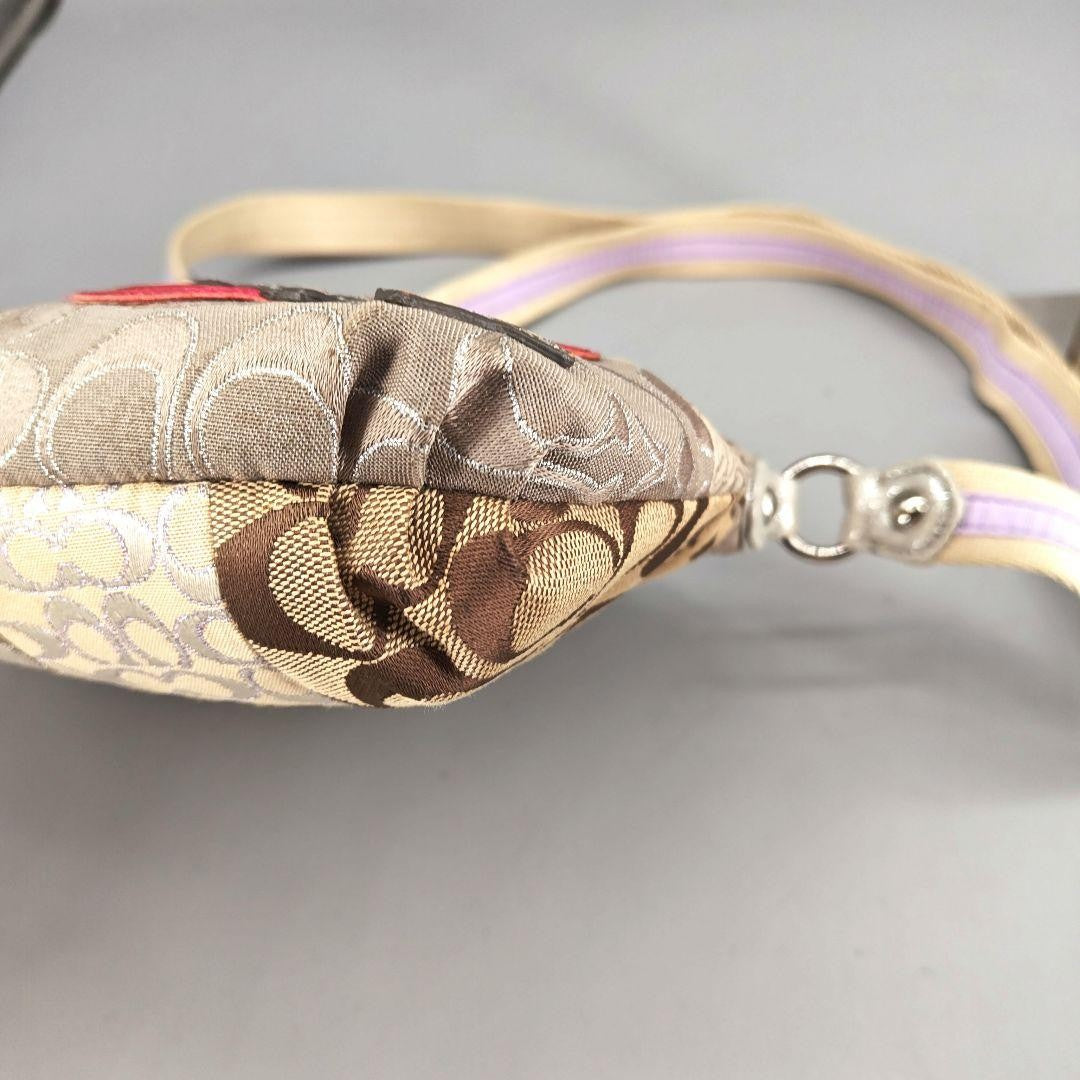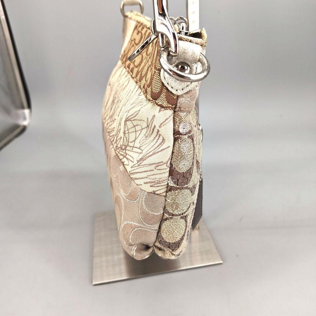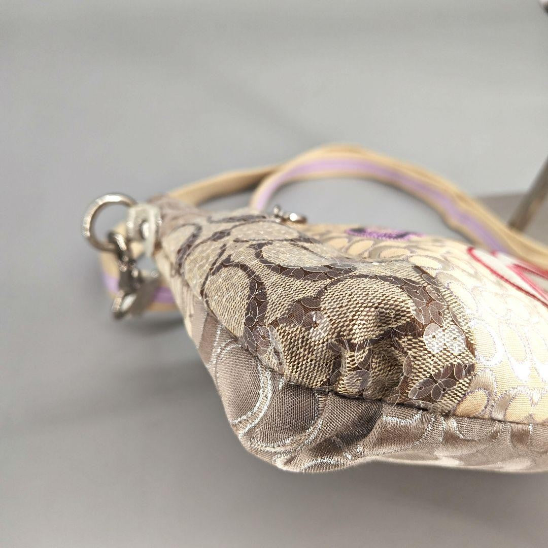 COACH Shoulder Bag Purse Signature Patchwork Sequin Poppy Beige Authentic