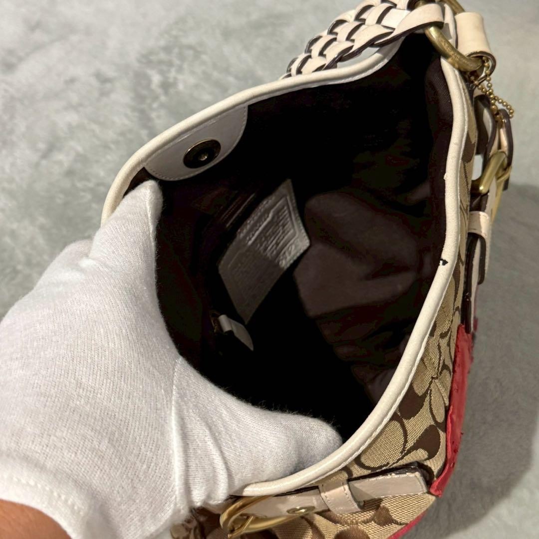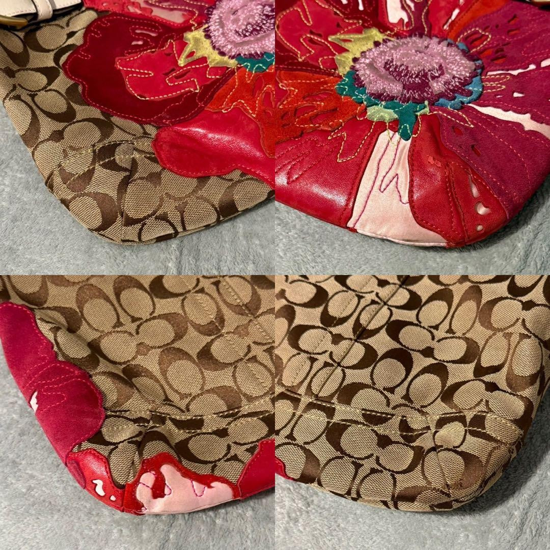 COACH Shoulder Bag Purse Signature Popy Flower Beige Authentic