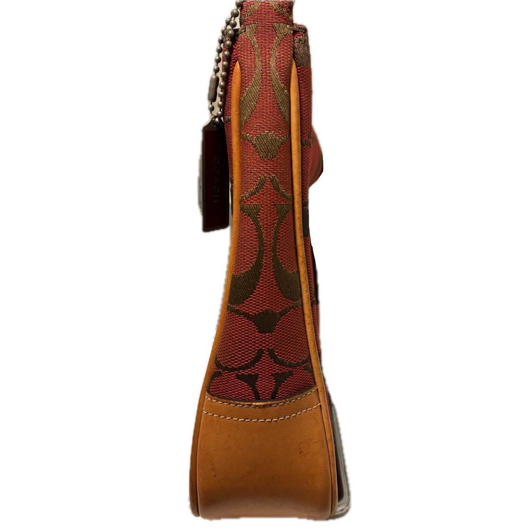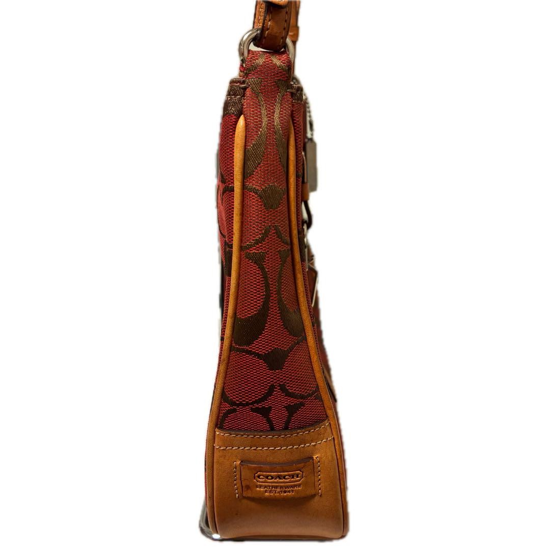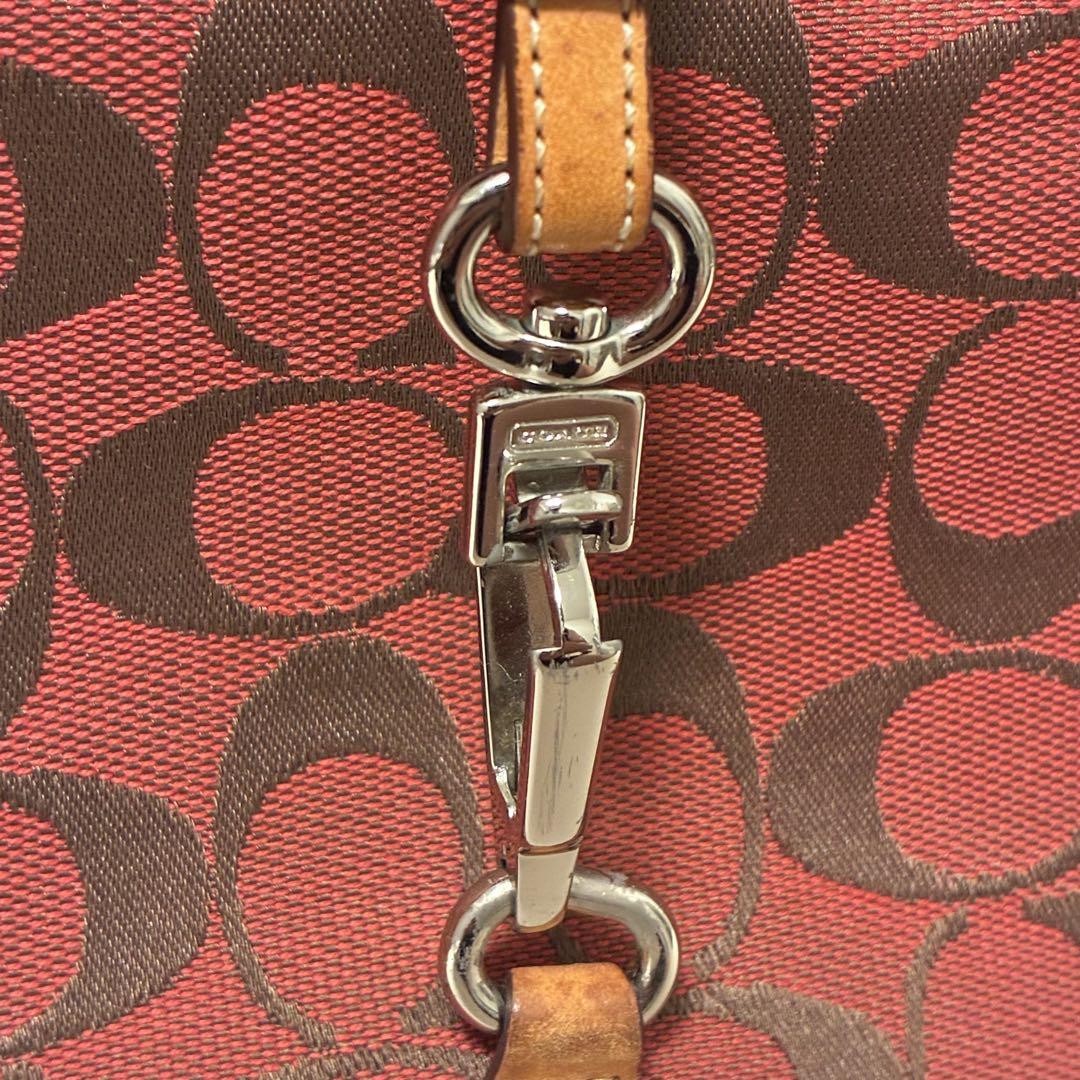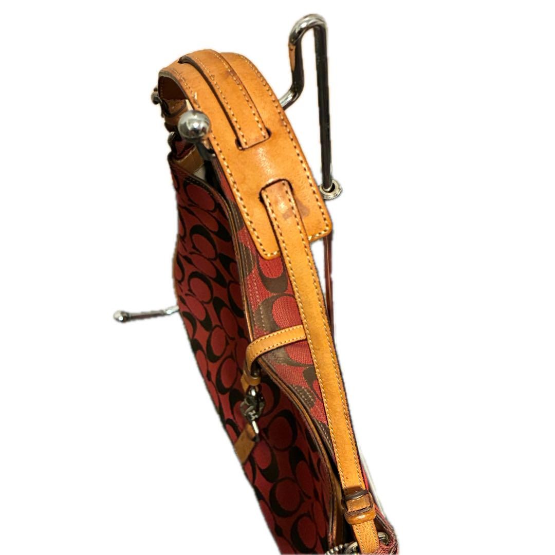 COACH Shoulder Bag Purse Signature Soft Clip Hobo Red Authentic