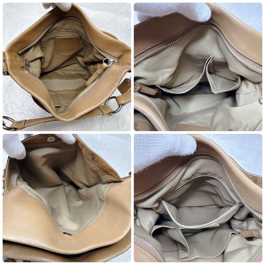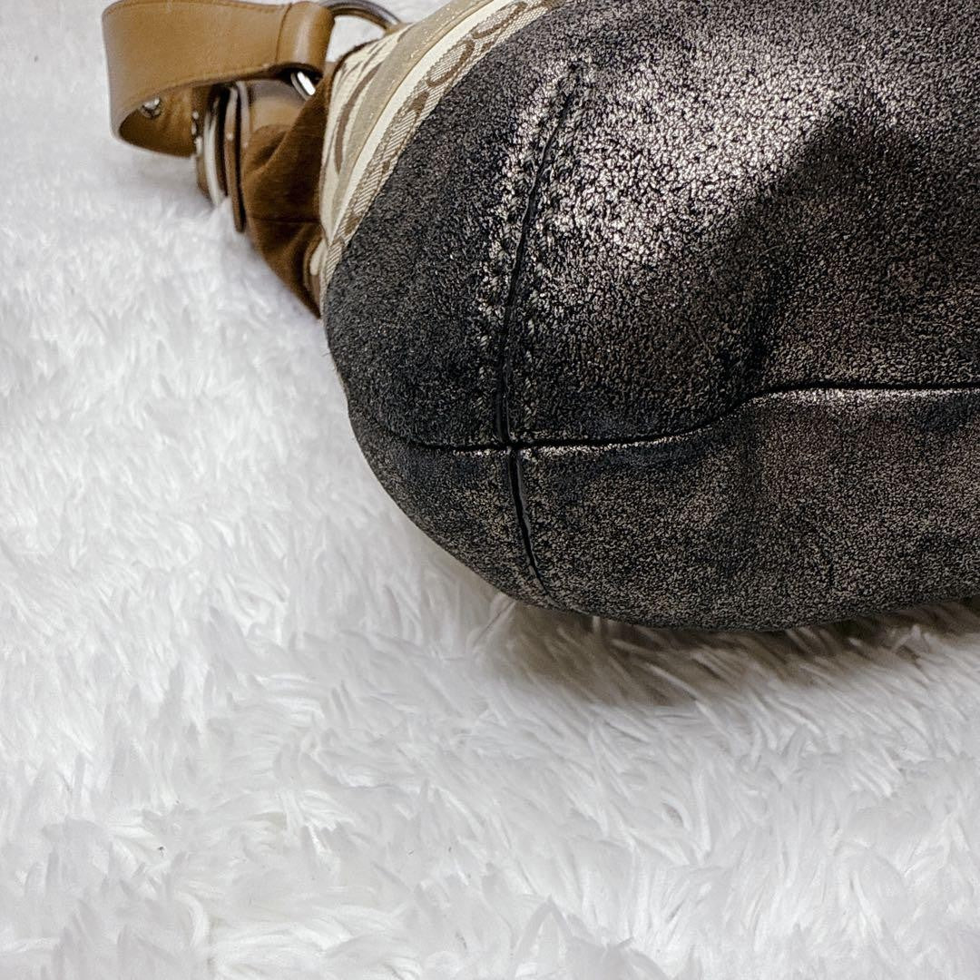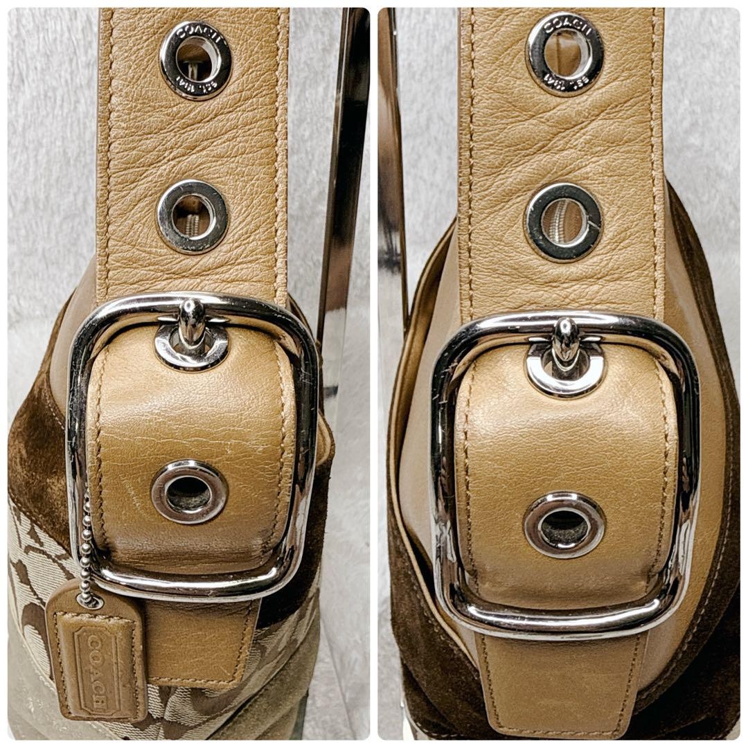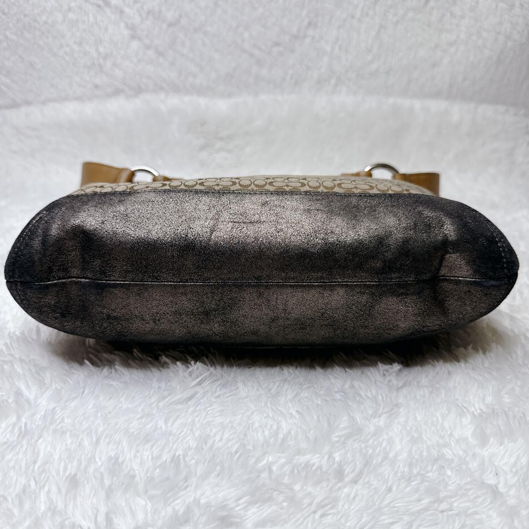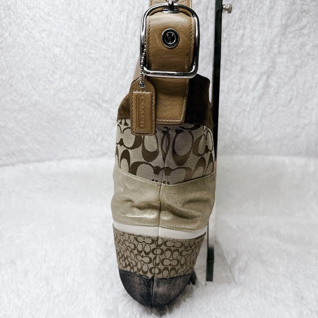 COACH Shoulder Bag Purse Signature Suede Canvas Leather Brown Authentic