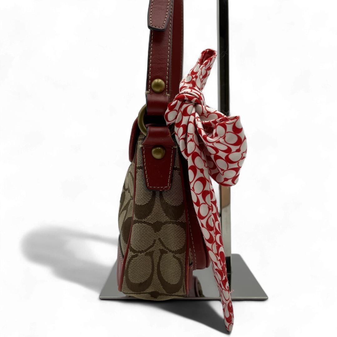 COACH Shoulder Bag Purse Signature Turn Lock 10566 Canvas Beige Authentic