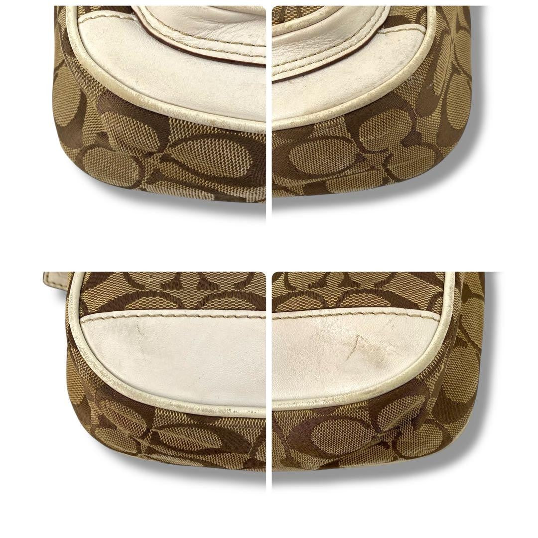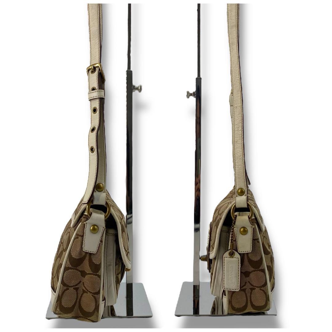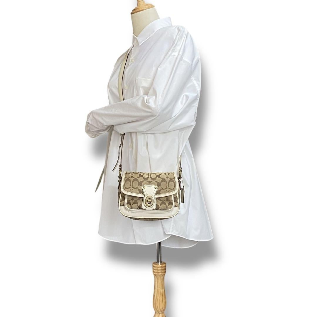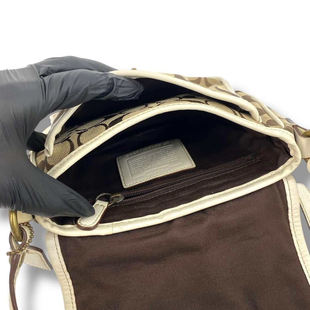 COACH Shoulder Bag Purse Turn Lock Canvas Leather White Beige Authentic