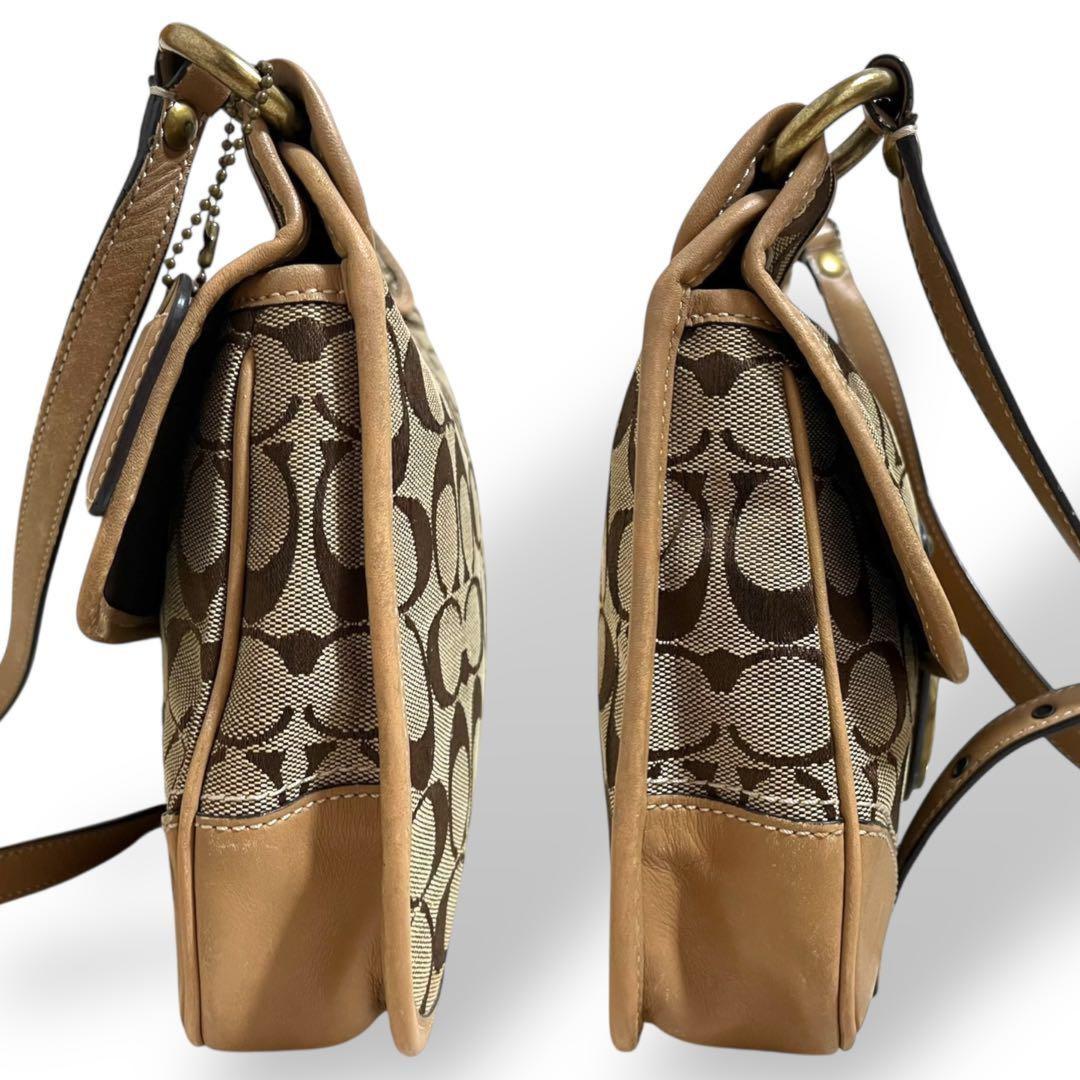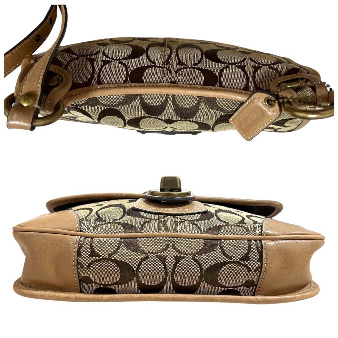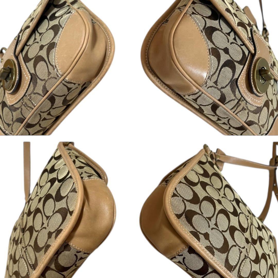 COACH Shoulder Bag Purse Turn Lock Signature Canvas Beige Authentic
