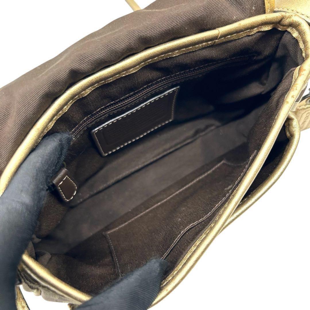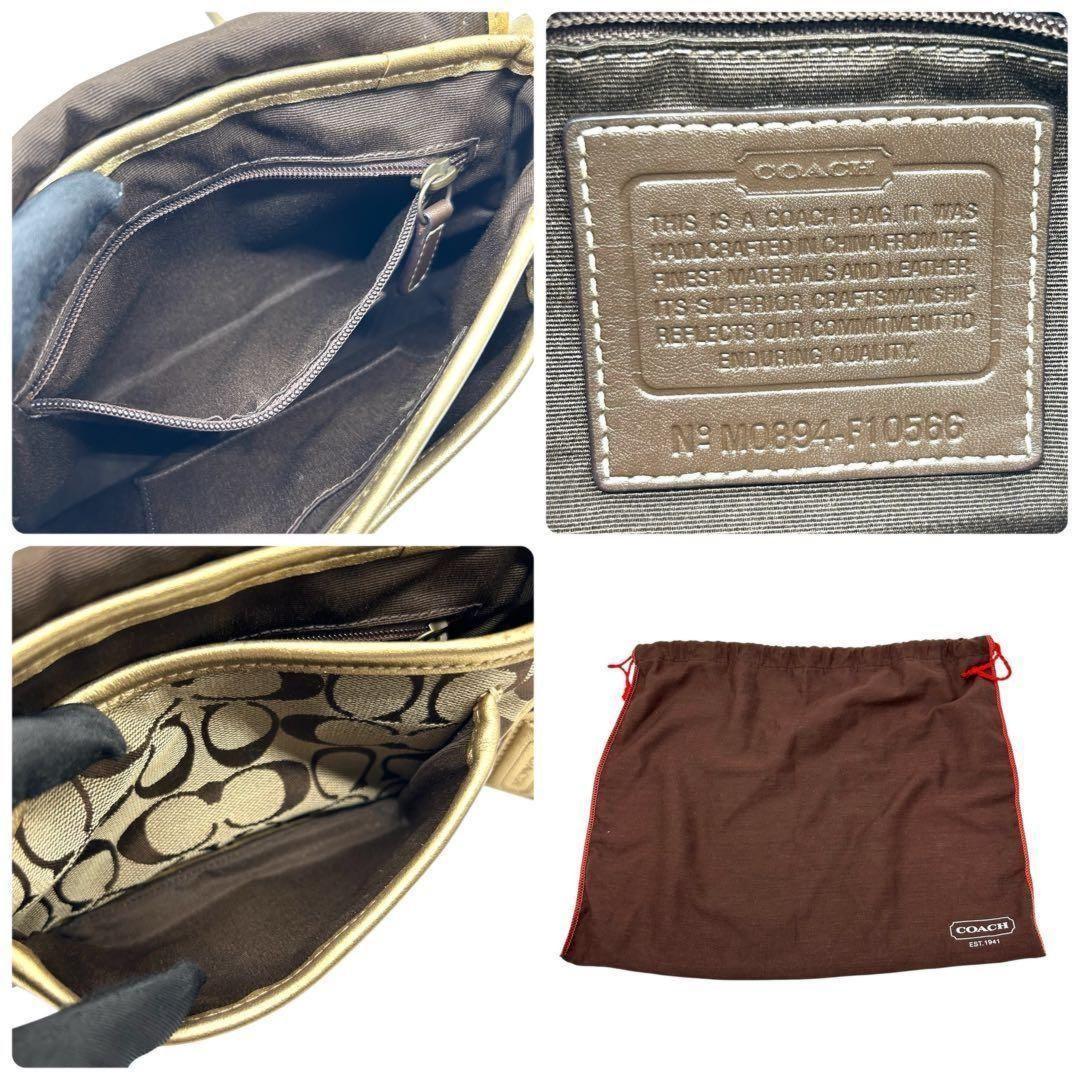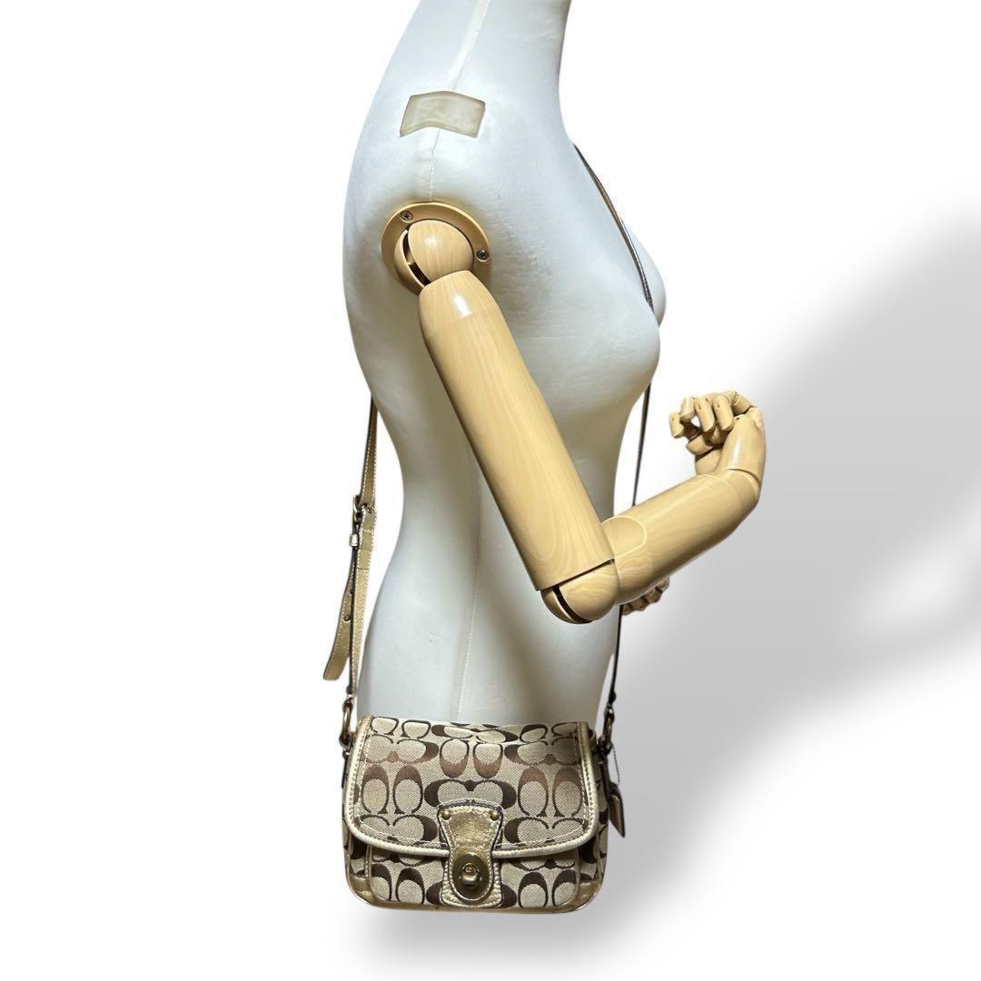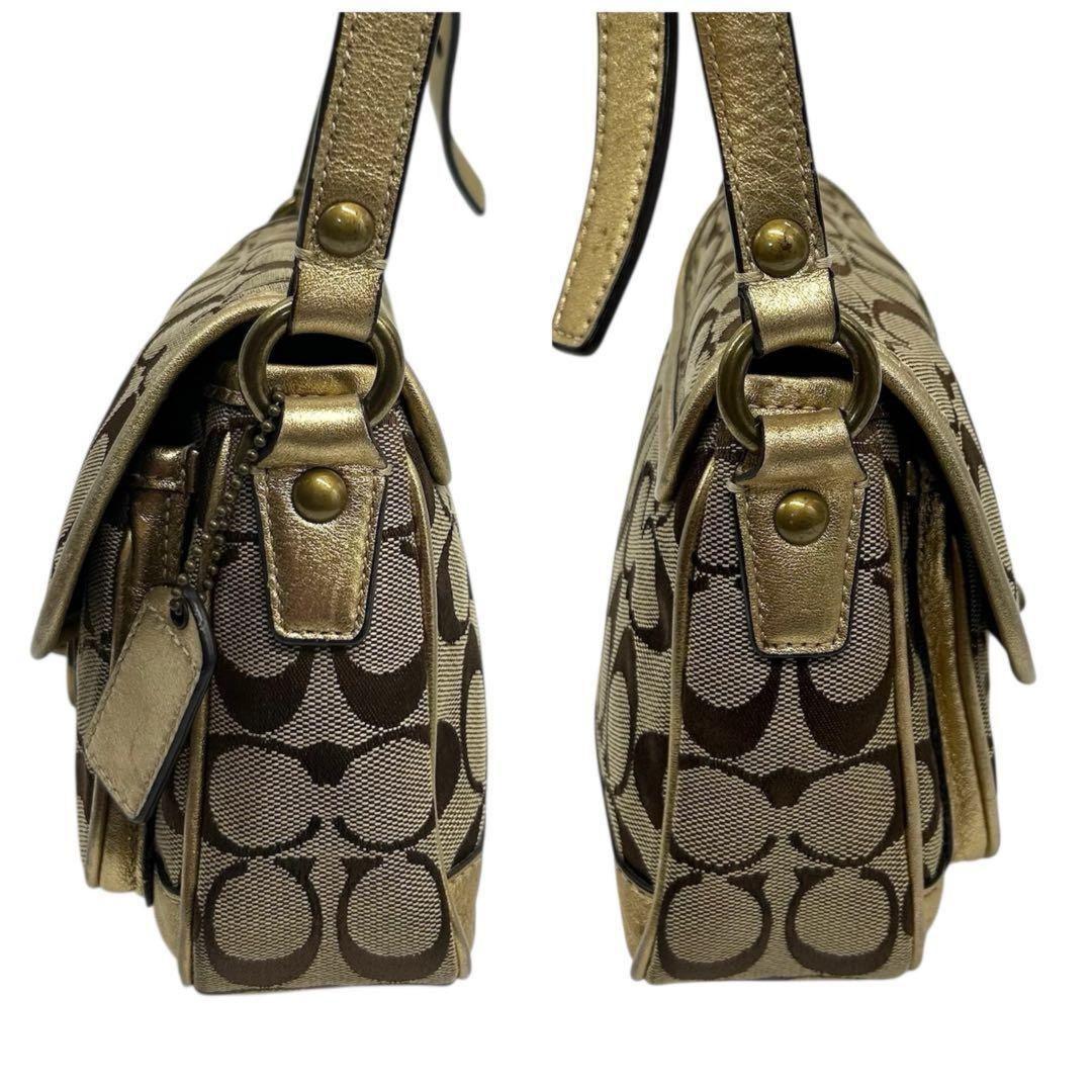 COACH Shoulder Bag Purse Turn Lock Signature Canvas Leather Gold Beige Authentic