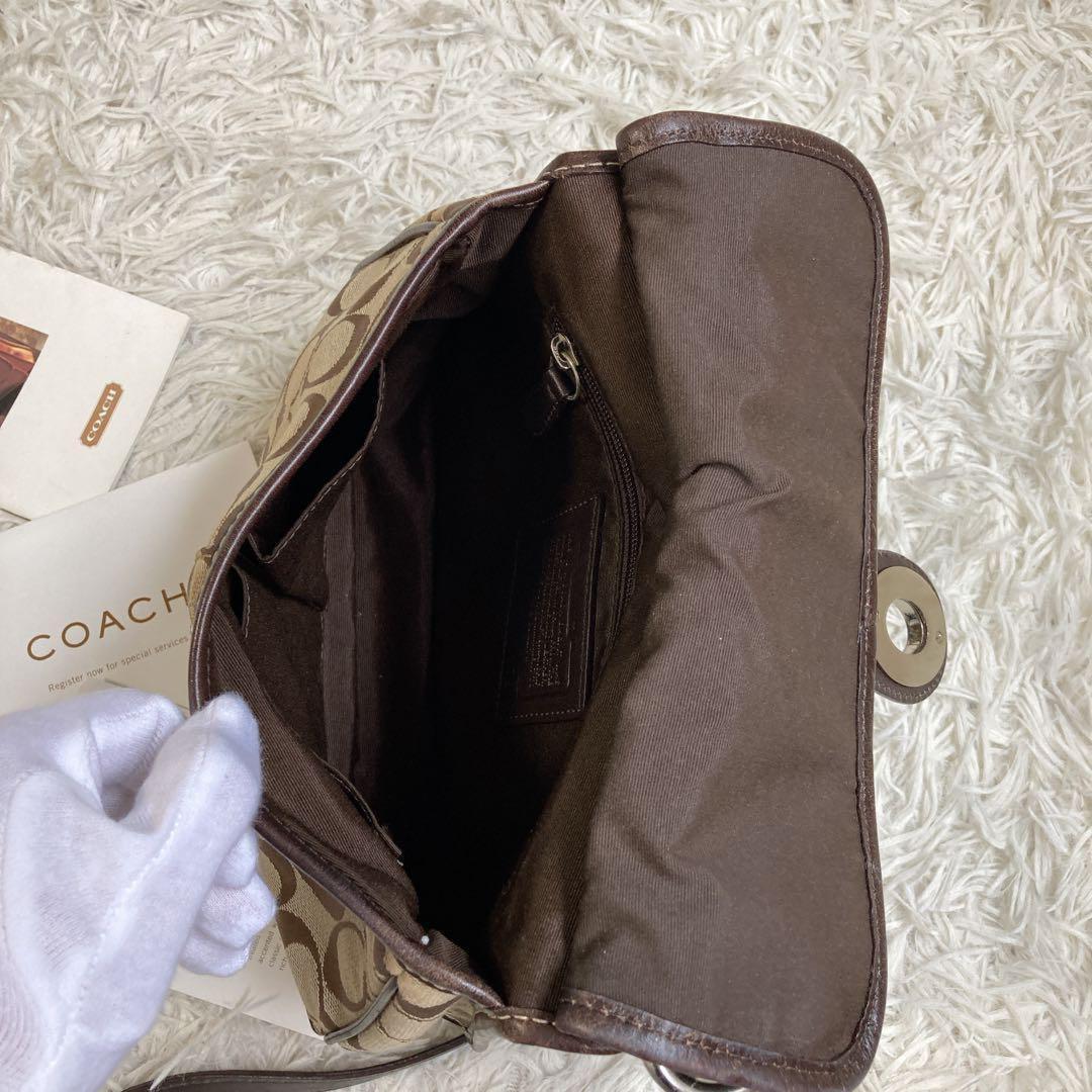 COACH Shoulder Bag Purse Turn Lock Signature Leather Brown Authentic