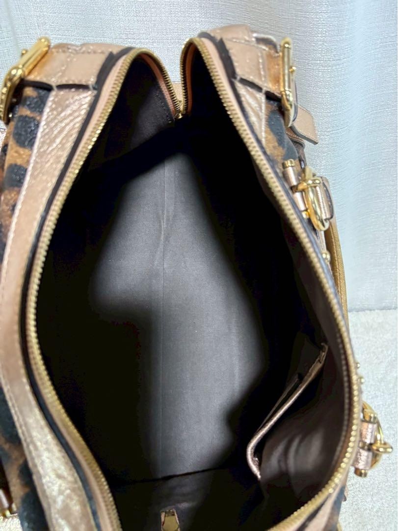 Dolce & Gabbana Hand Bag Tote Purse 2way Leopard PVC Leather Brown Pink Gold