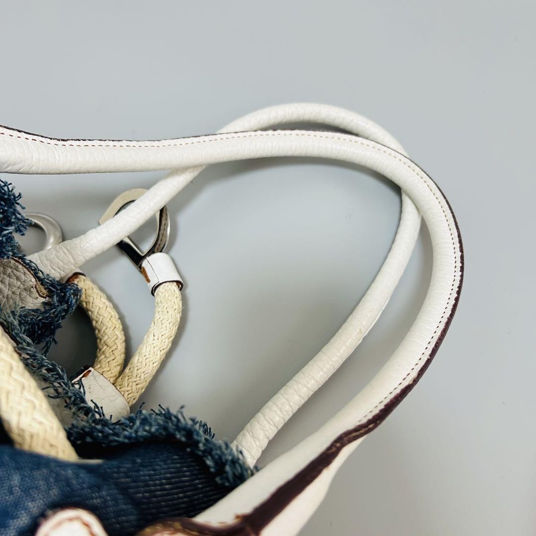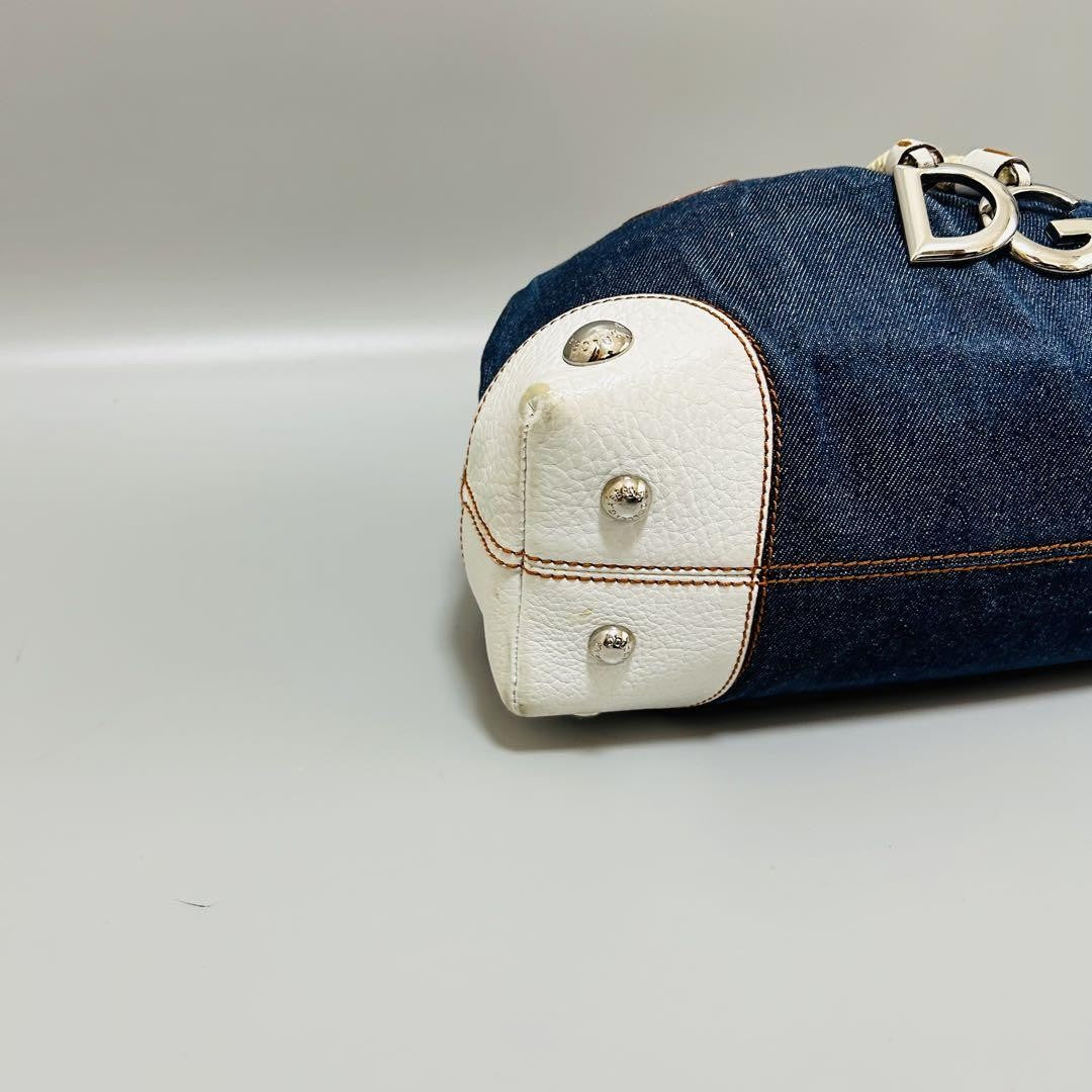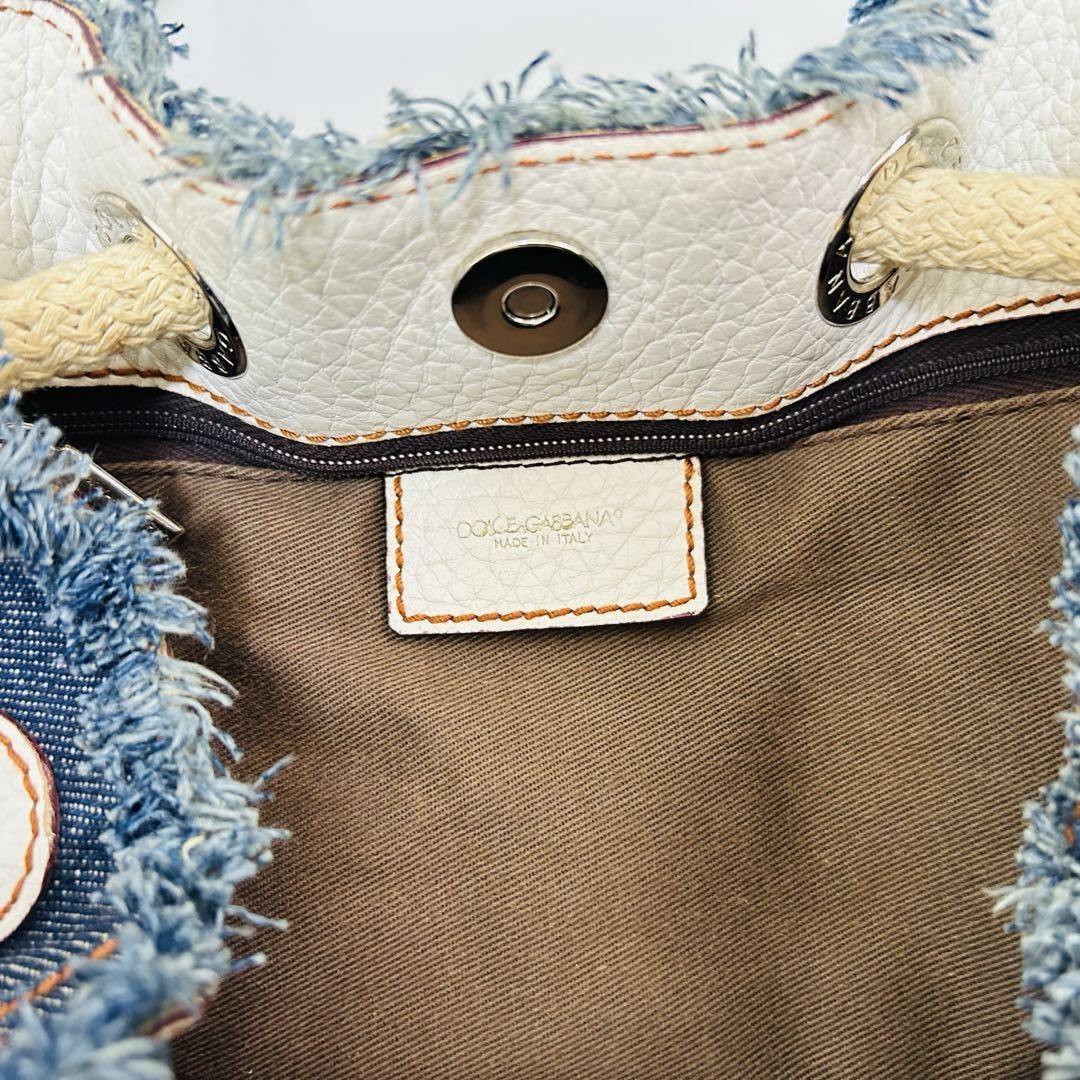 Dolce & Gabbana Hand Bag Tote Purse Denim Leather Blue White Authentic