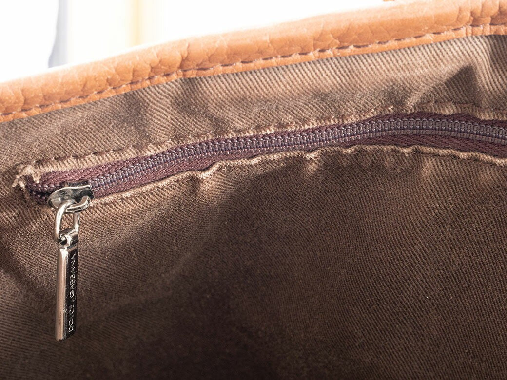Interior: Scuffed, slightly faded, uneven coloring, slightly frayed, small scratches and scuffed edges on metal fittings