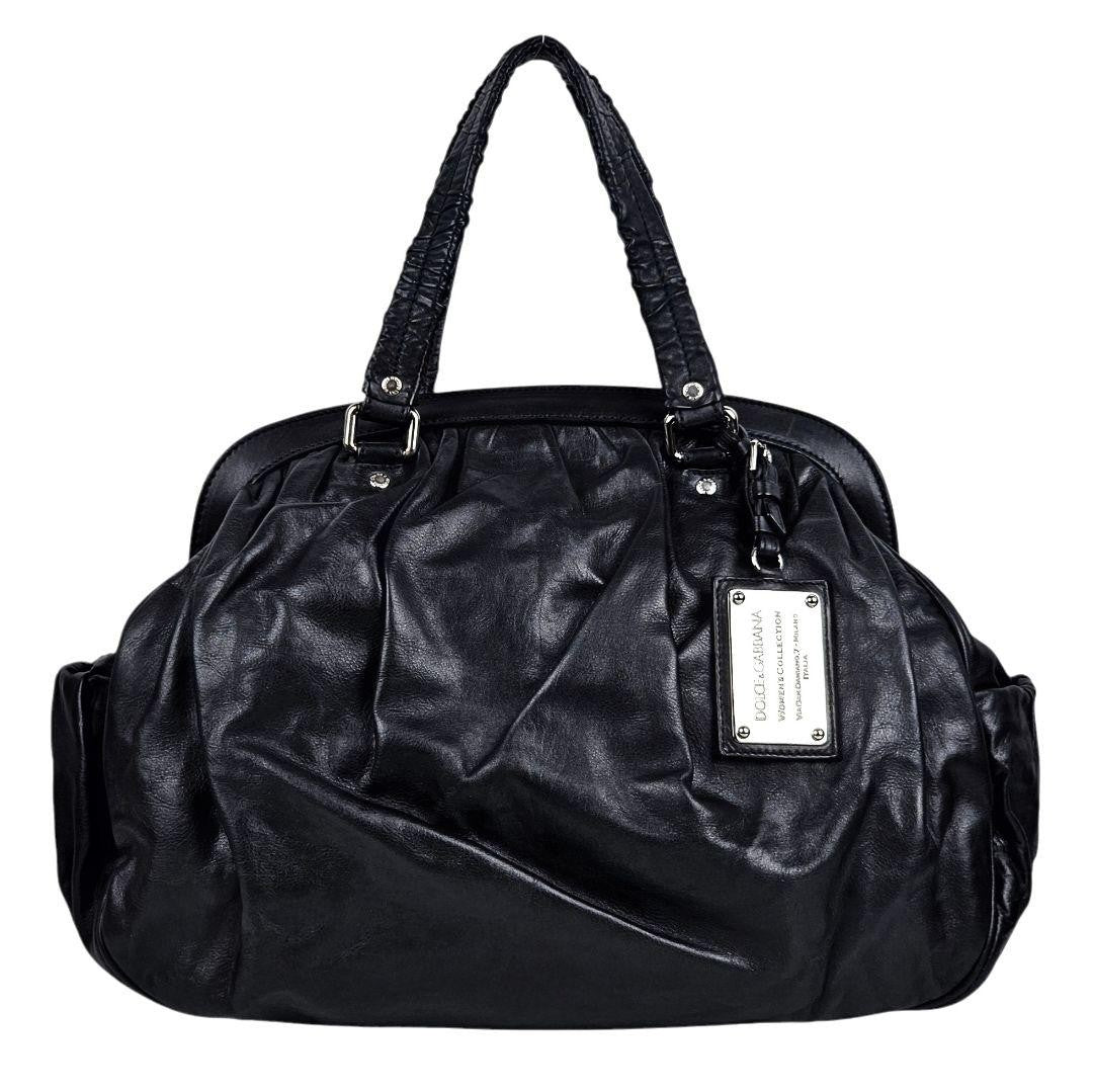Dolce & Gabbana Hand Bag Tote Purse Leopard Leather Black Authentic