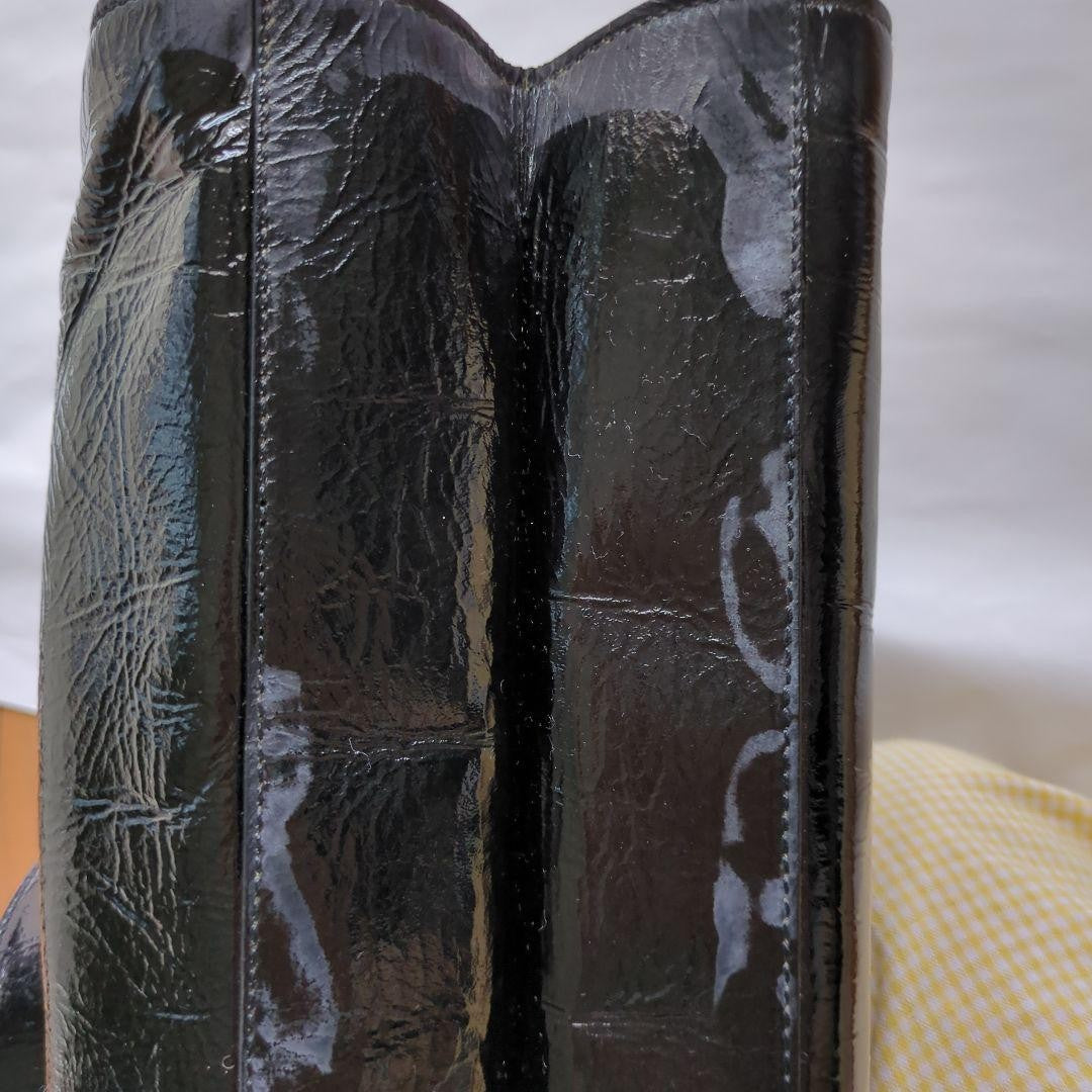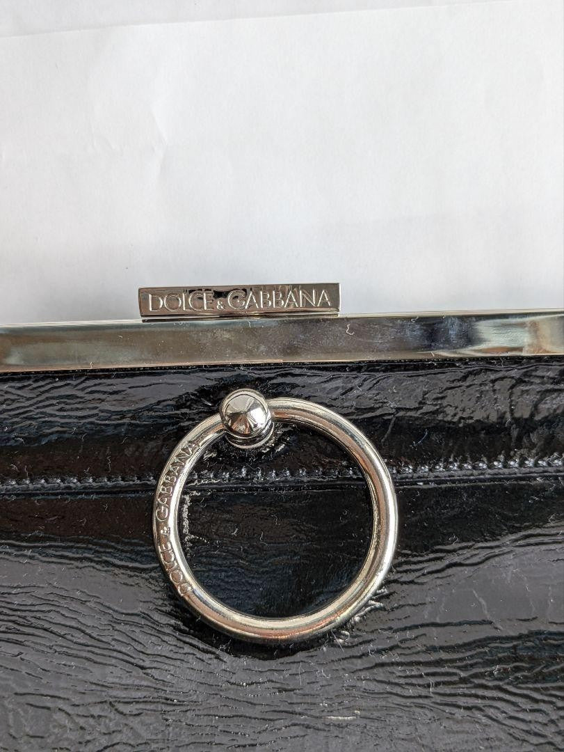 Dolce & Gabbana Hand Bag Tote Purse Leopard Patent Leather Black Authentic