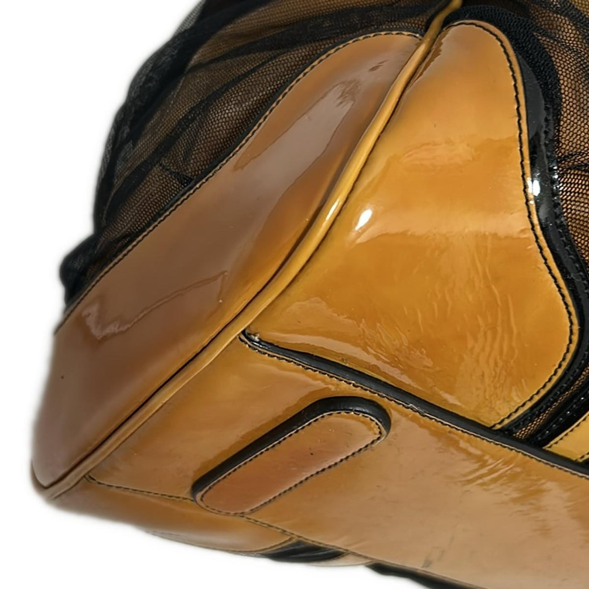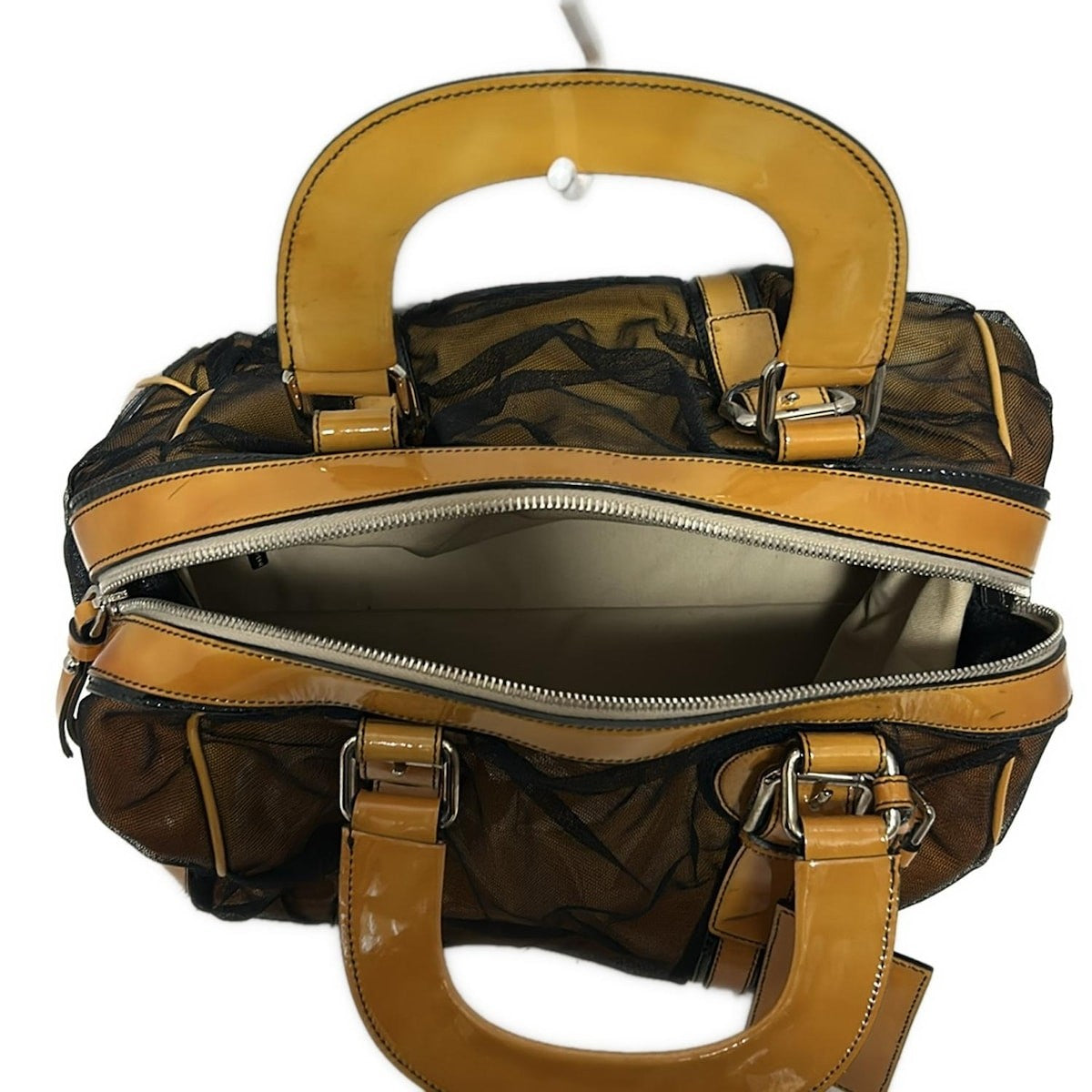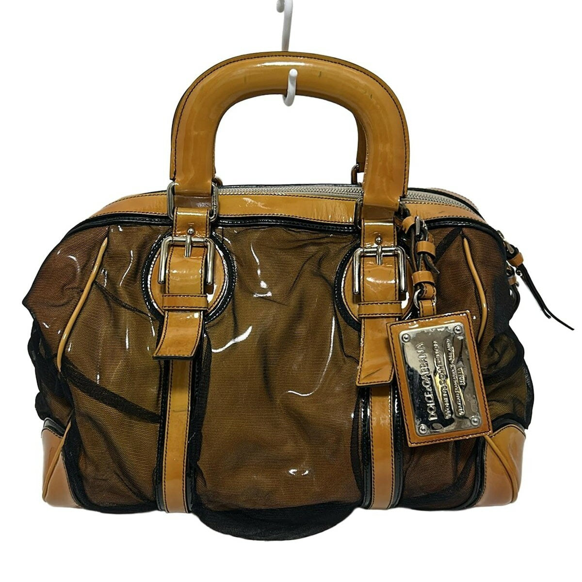 Dolce & Gabbana Hand Bag Tote Purse Patent Leather Nylon Beige Black Authentic