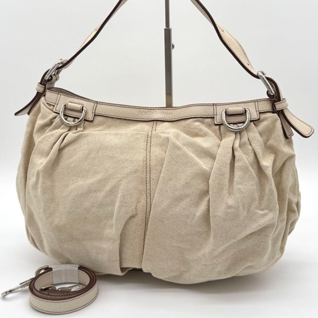 Dolce & Gabbana Hand Shoulder Bag Tote Purse 2way Leopard Canvas Beige Authentic
