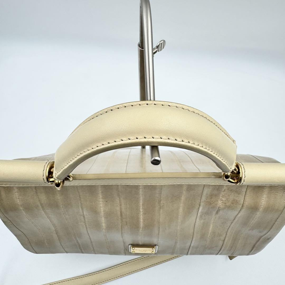 Dolce & Gabbana Hand Shoulder Bag Tote Purse 2way Leopard Leather Beige Auth