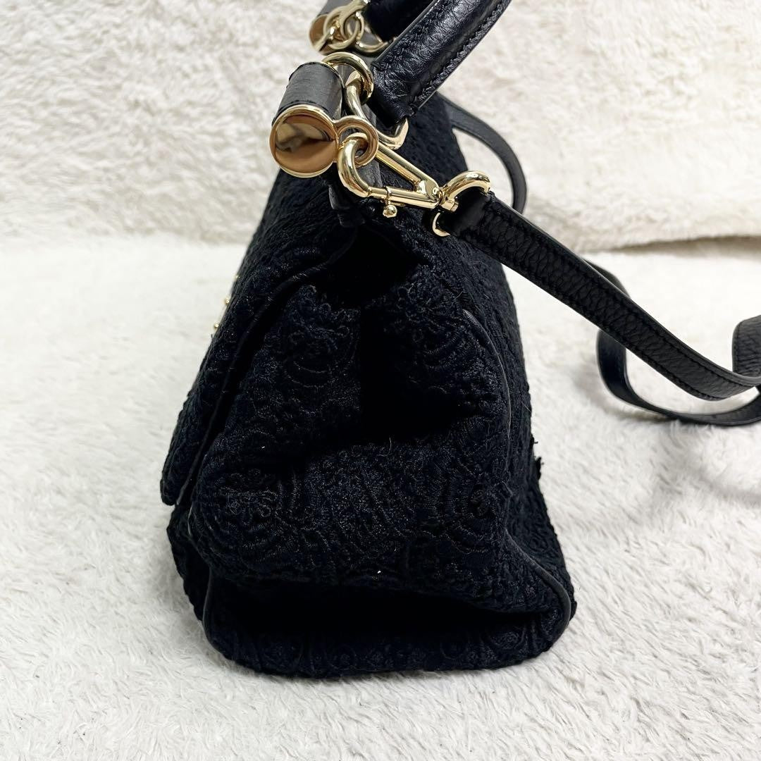 Dolce & Gabbana Hand Shoulder Bag Tote Purse 2way Leopard Leather Canvas Black