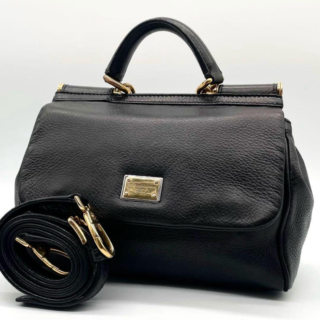 Dolce & Gabbana Shoulder Bag Purse 2way Leopard Leather Black Authentic