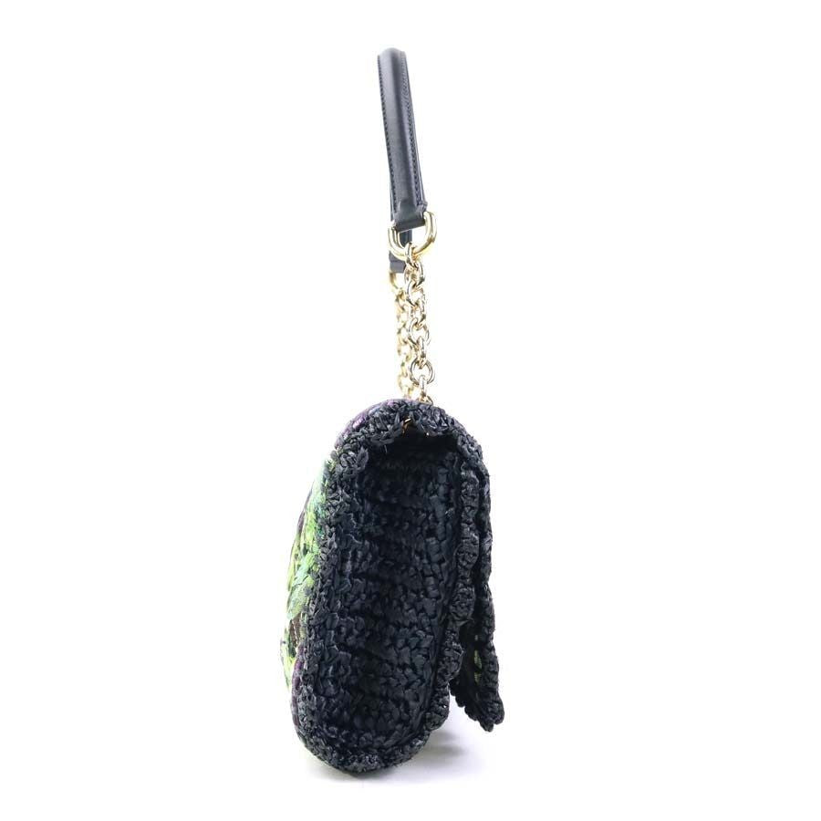 Dolce & Gabbana Shoulder Bag Purse Canvas Raffia Purple Green Black Authentic