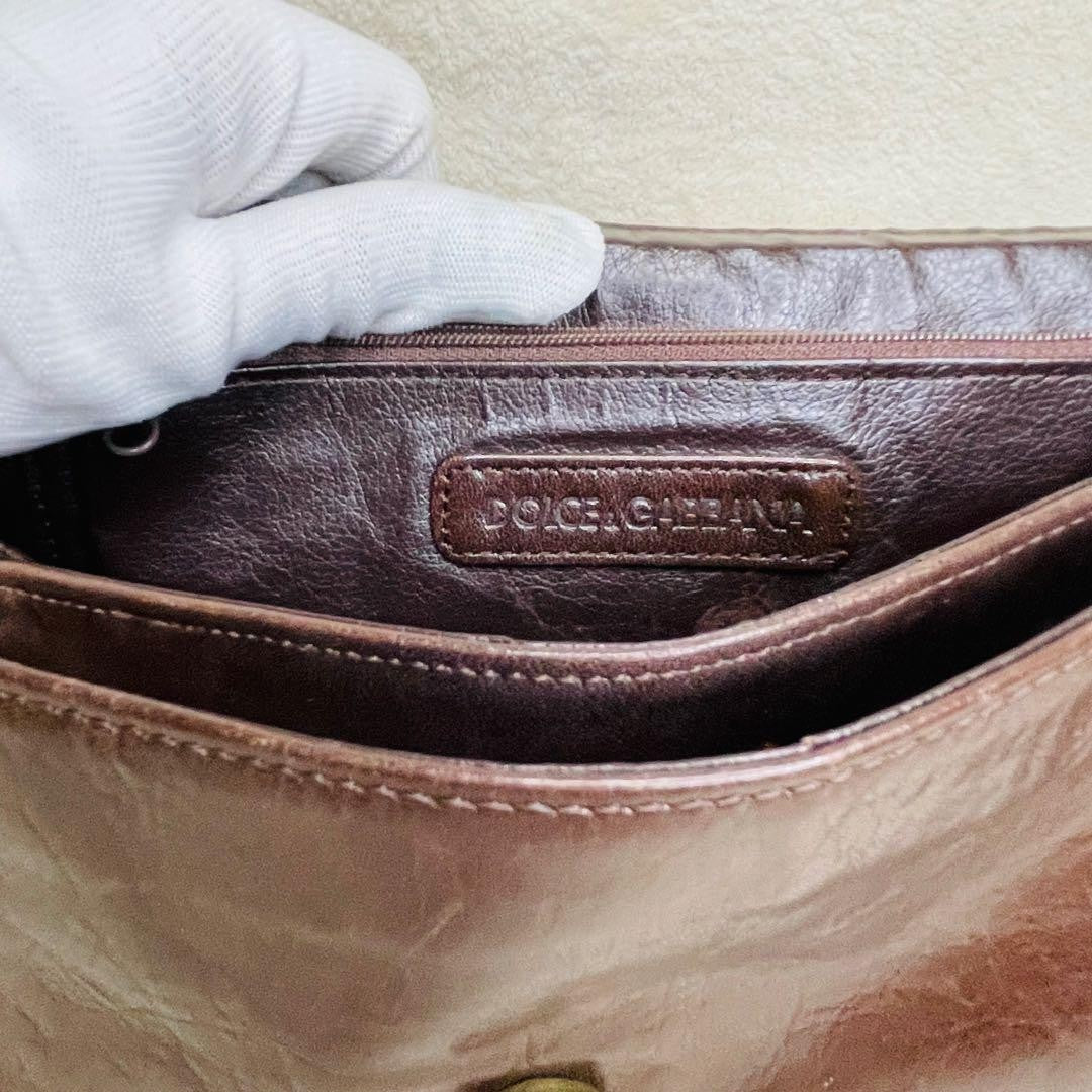 Dolce & Gabbana Shoulder Bag Purse Leather Brown Authentic