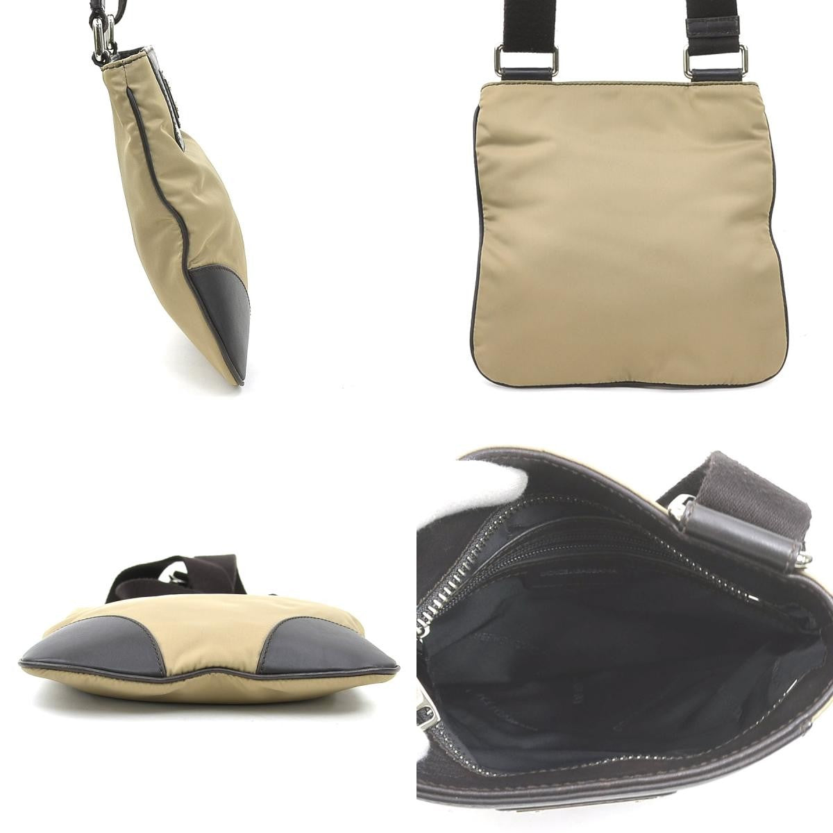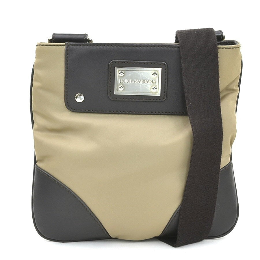 Dolce & Gabbana Shoulder Bag Purse Nylon Leather Brown Authentic