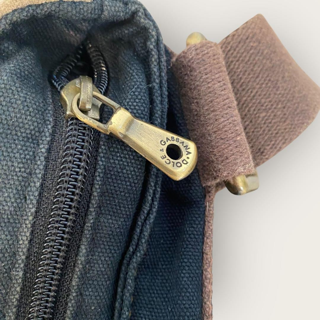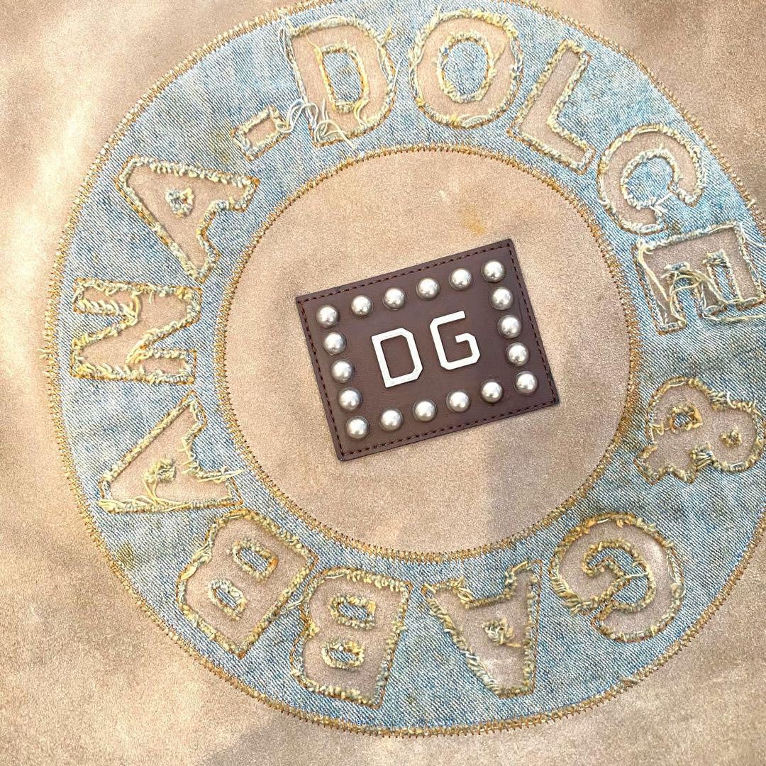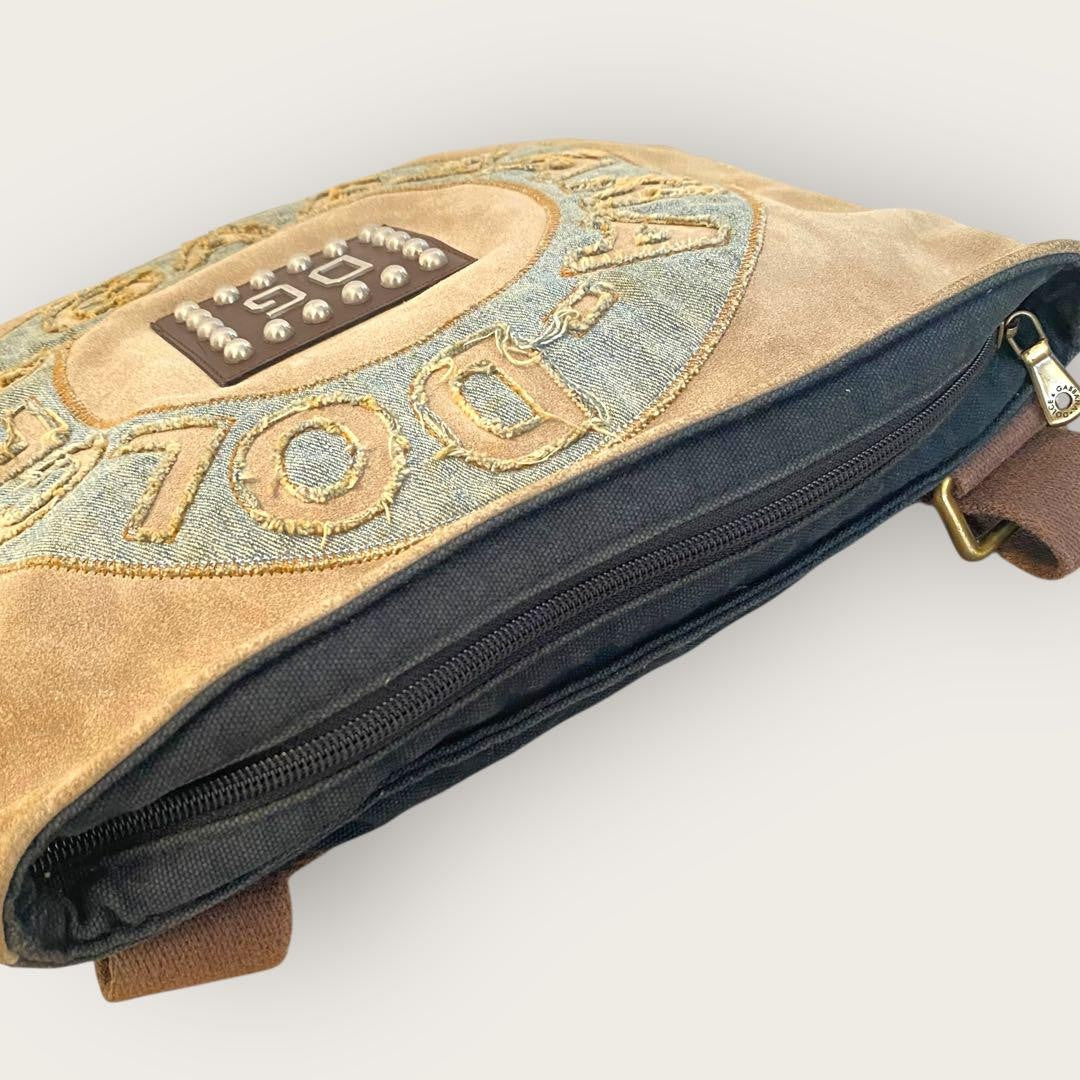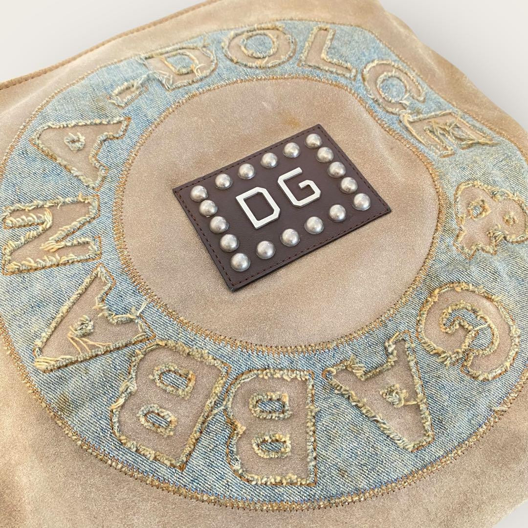 Dolce & Gabbana Shoulder Bag Purse Suede Leather Denim Indigo Beige Authentic