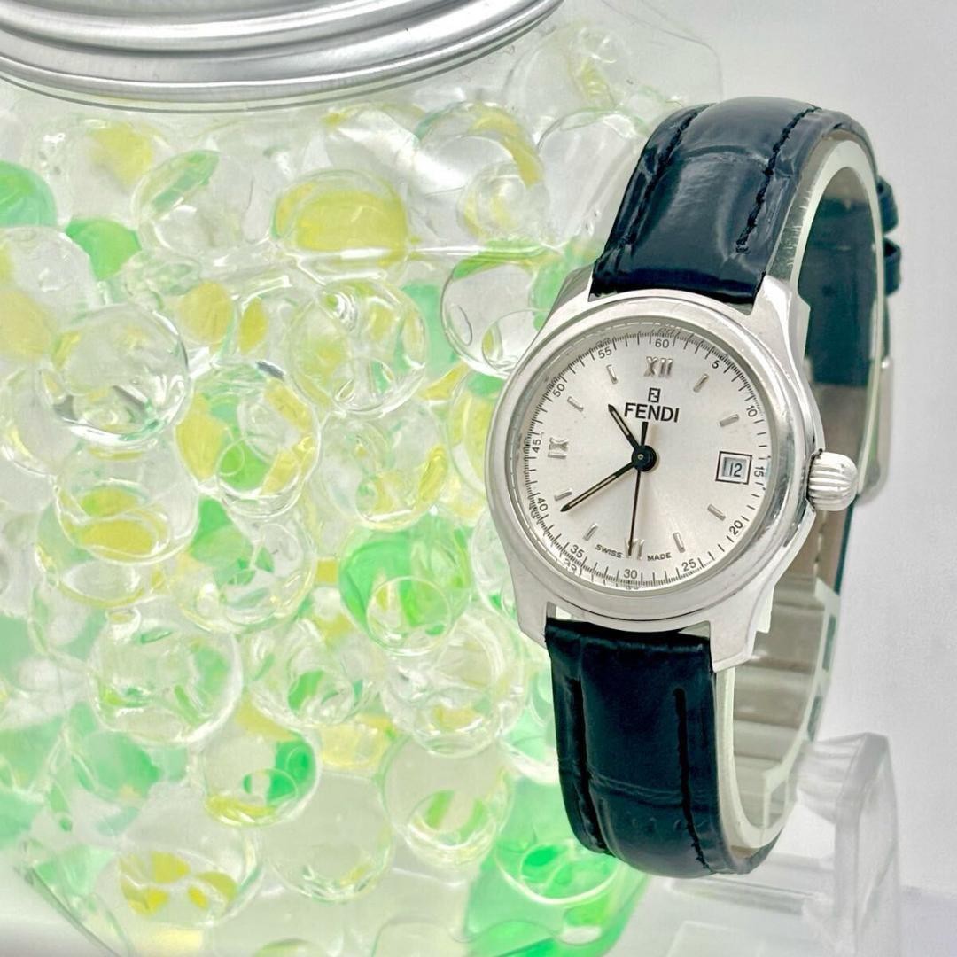FENDI 210L Quartz Watch Wristwatch FF Logo Black Silver Women's Authentic