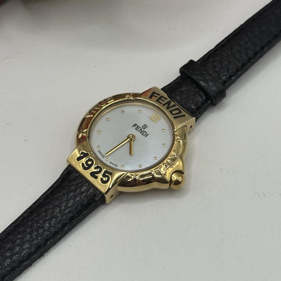 FENDI 430L Quartz Watch Wristwatch FF Logo Gold Black Women's Authentic