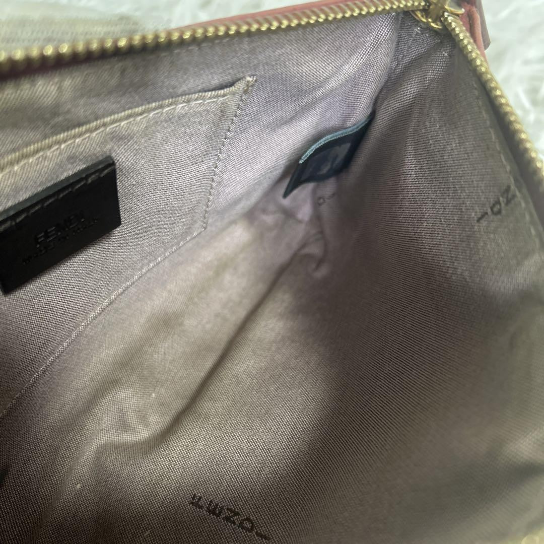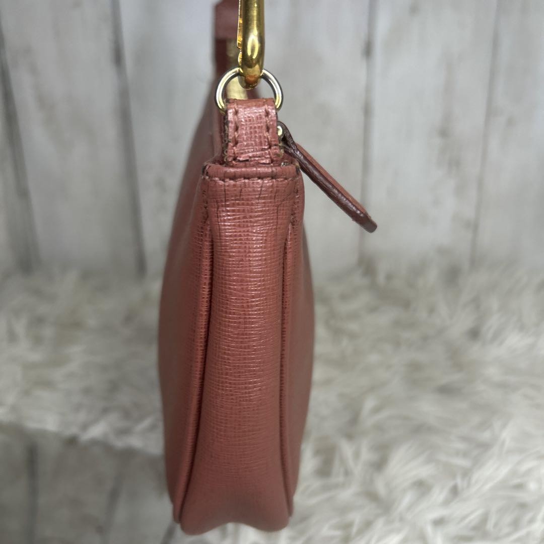 FENDI Accessory Pouch Hand Bag Tote Purse Chain Leather Pink Authentic