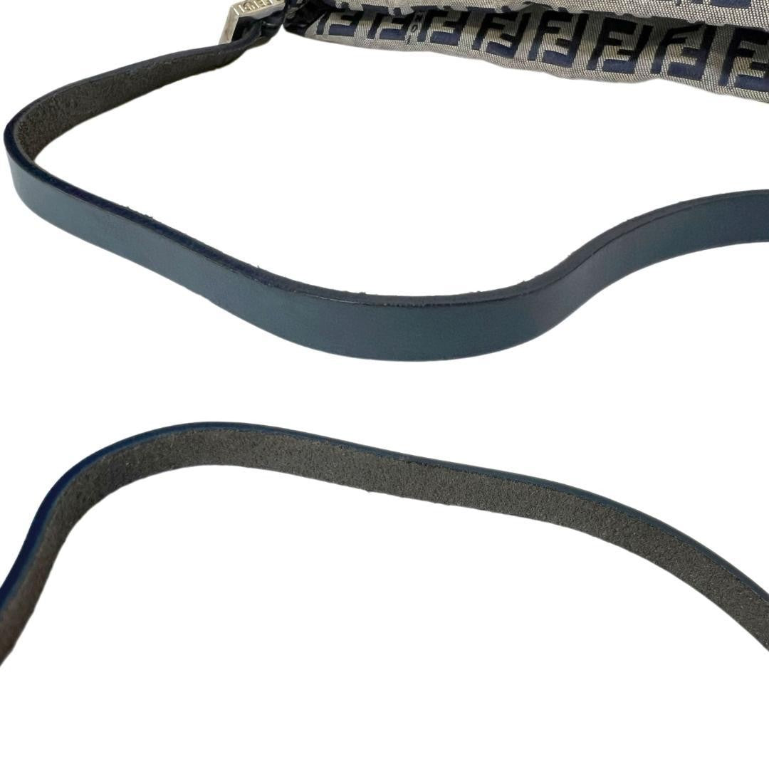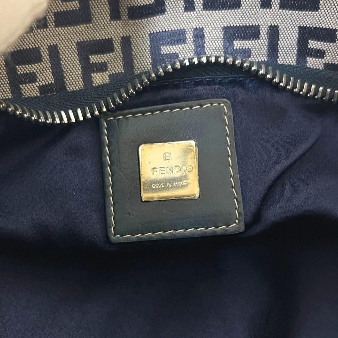 FENDI Accessory Pouch Hand Bag Tote Purse FF Zucchino Canvas Leather Navy Auth