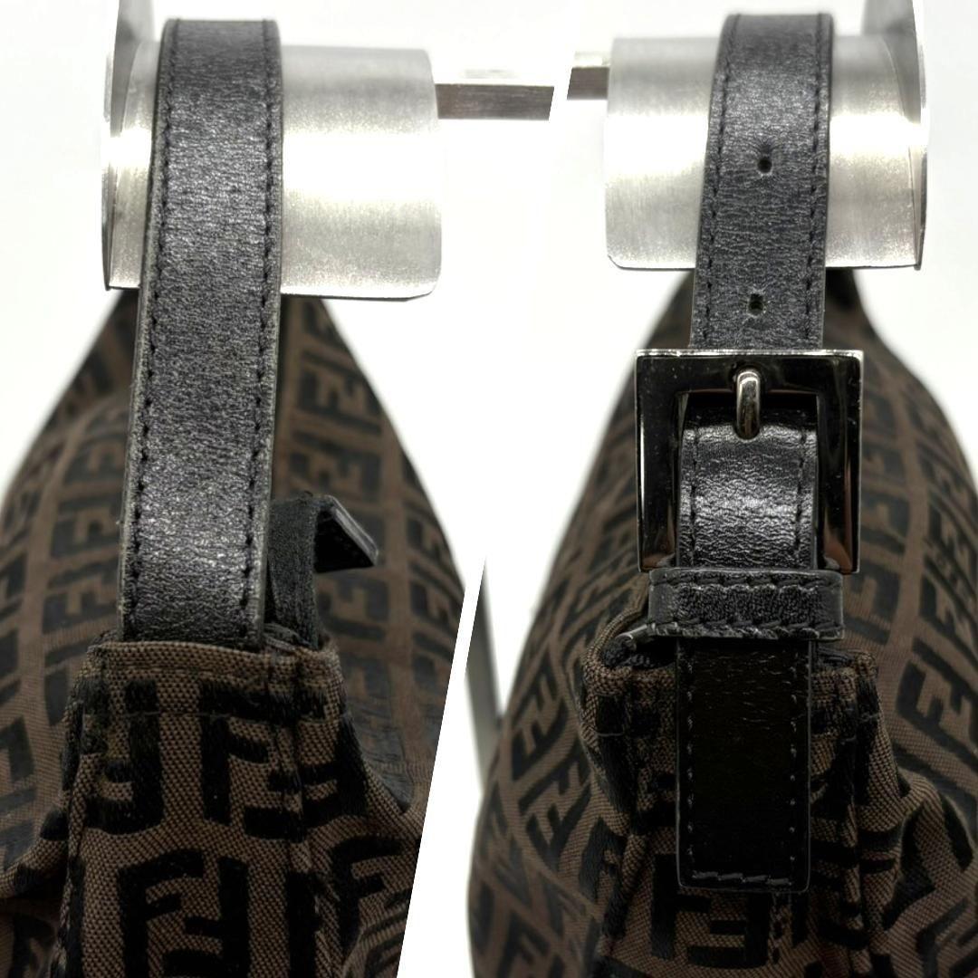 FENDI Accessory Pouch Hand Pouch FF Zucca Canvas Leather Brown Authentic
