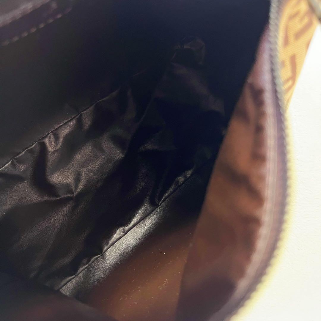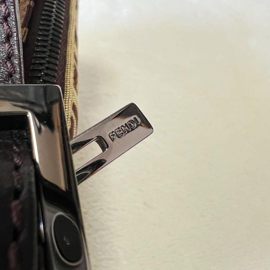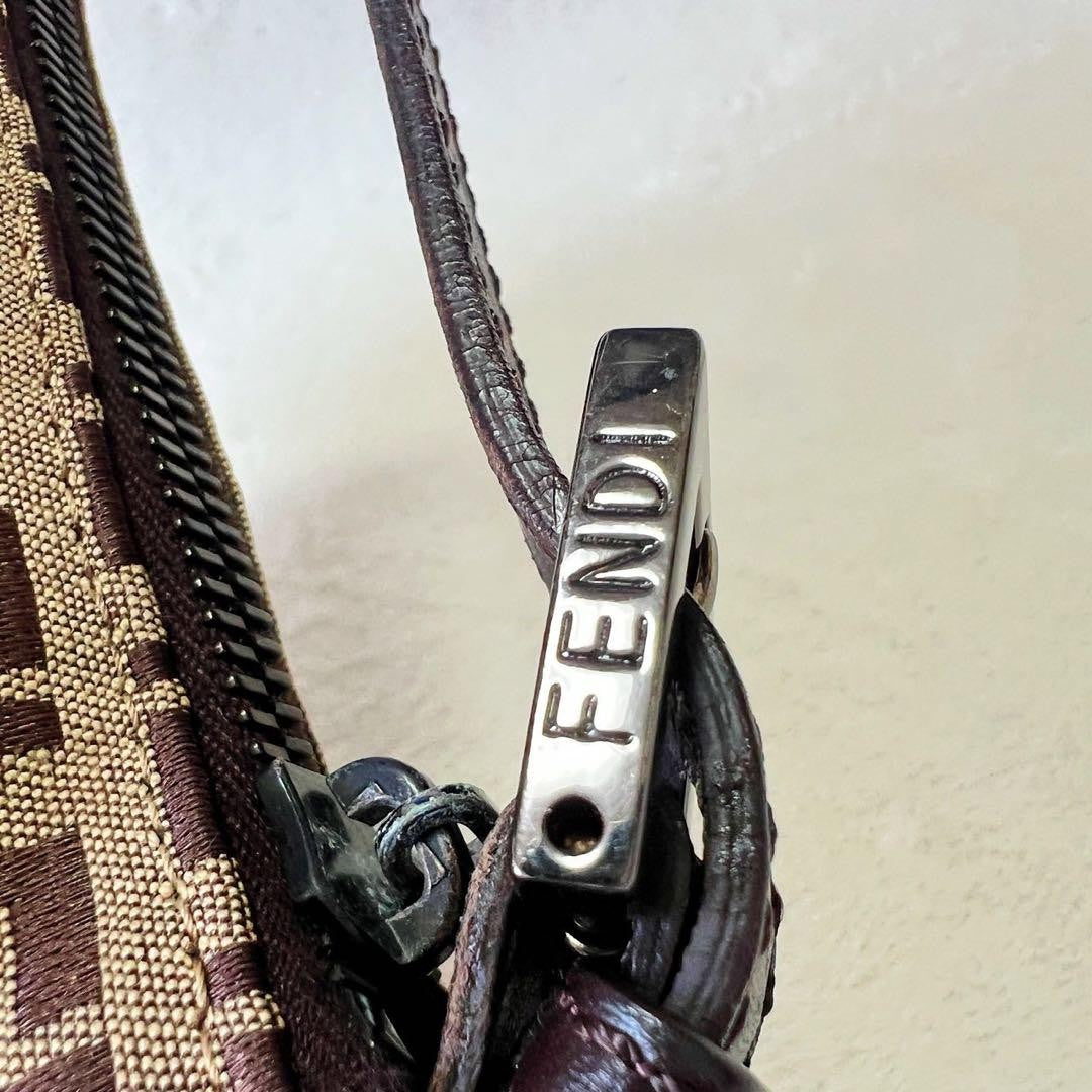 FENDI Accessory Pouch Hand Pouch FF Zucchino Canvas Leather Brown Authentic