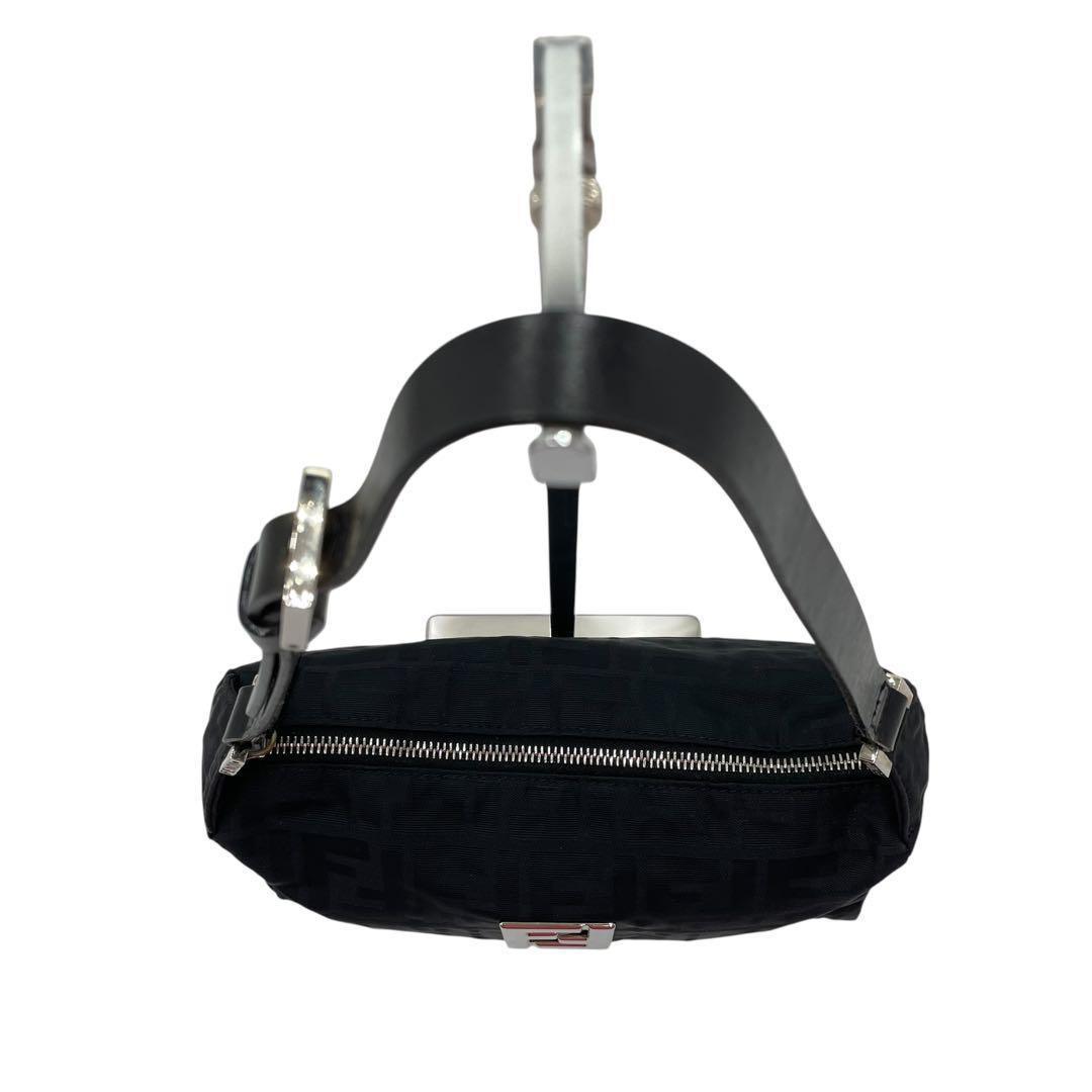 FENDI Accessory Pouch Shoulder Bag Purse FF Zucca Cotton Black Authentic