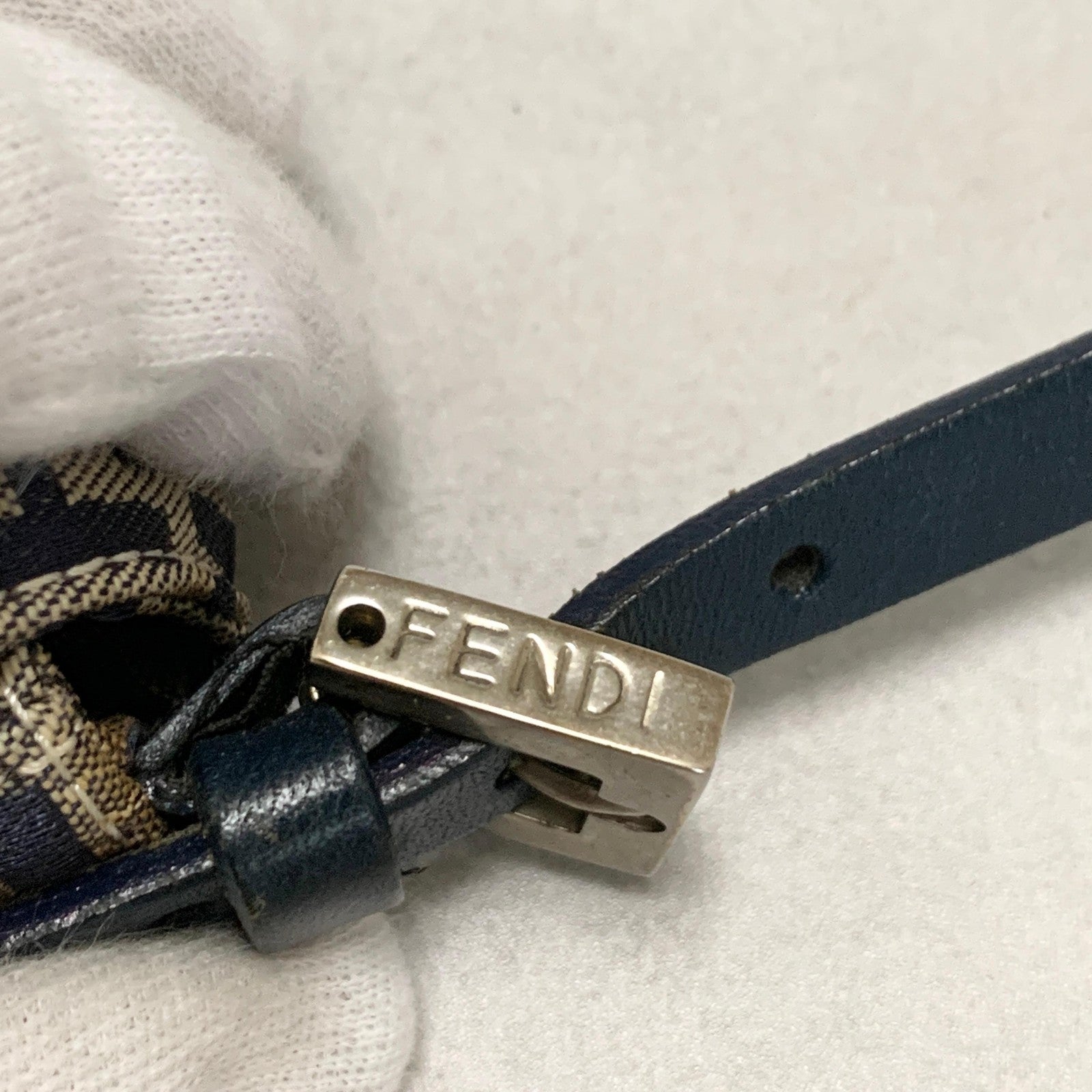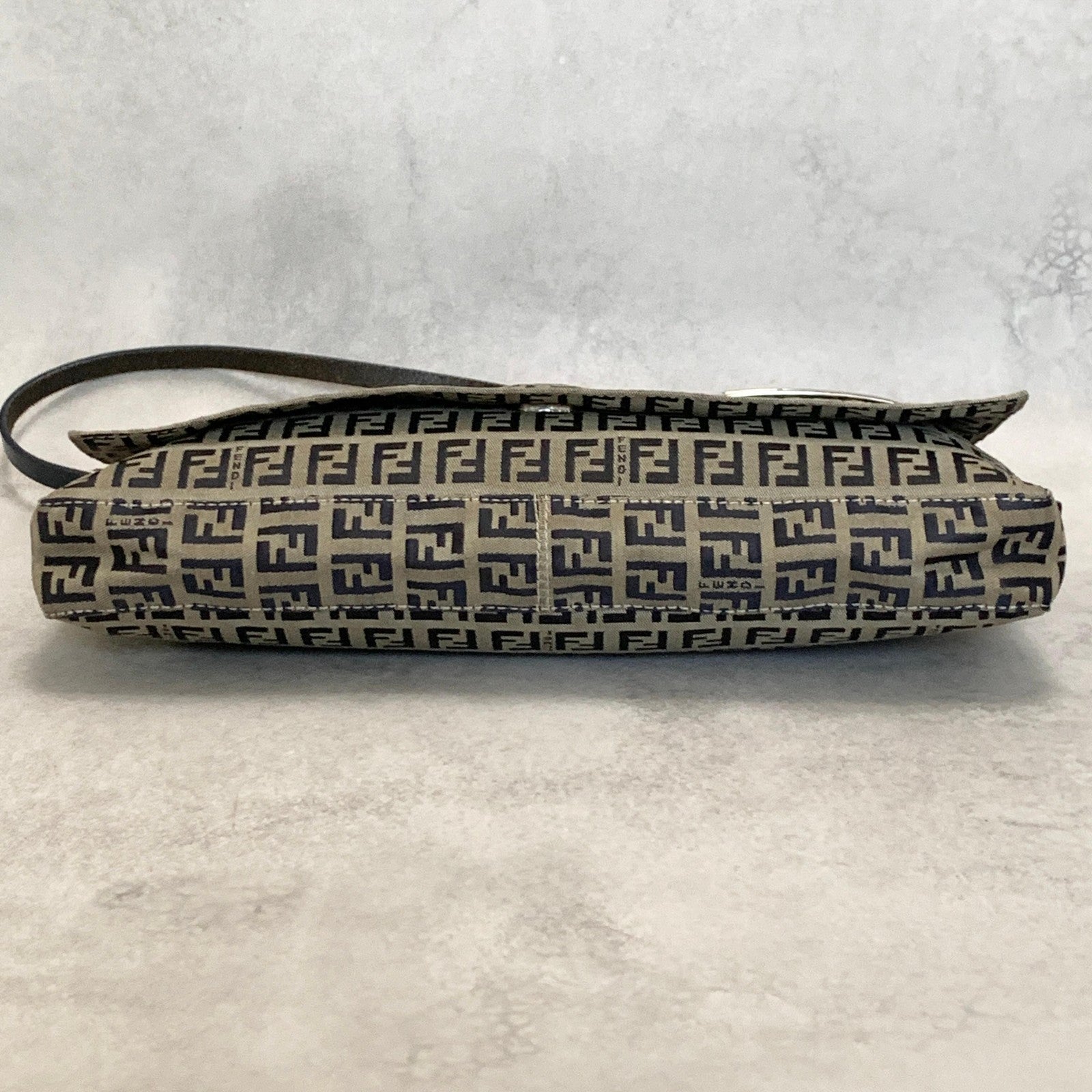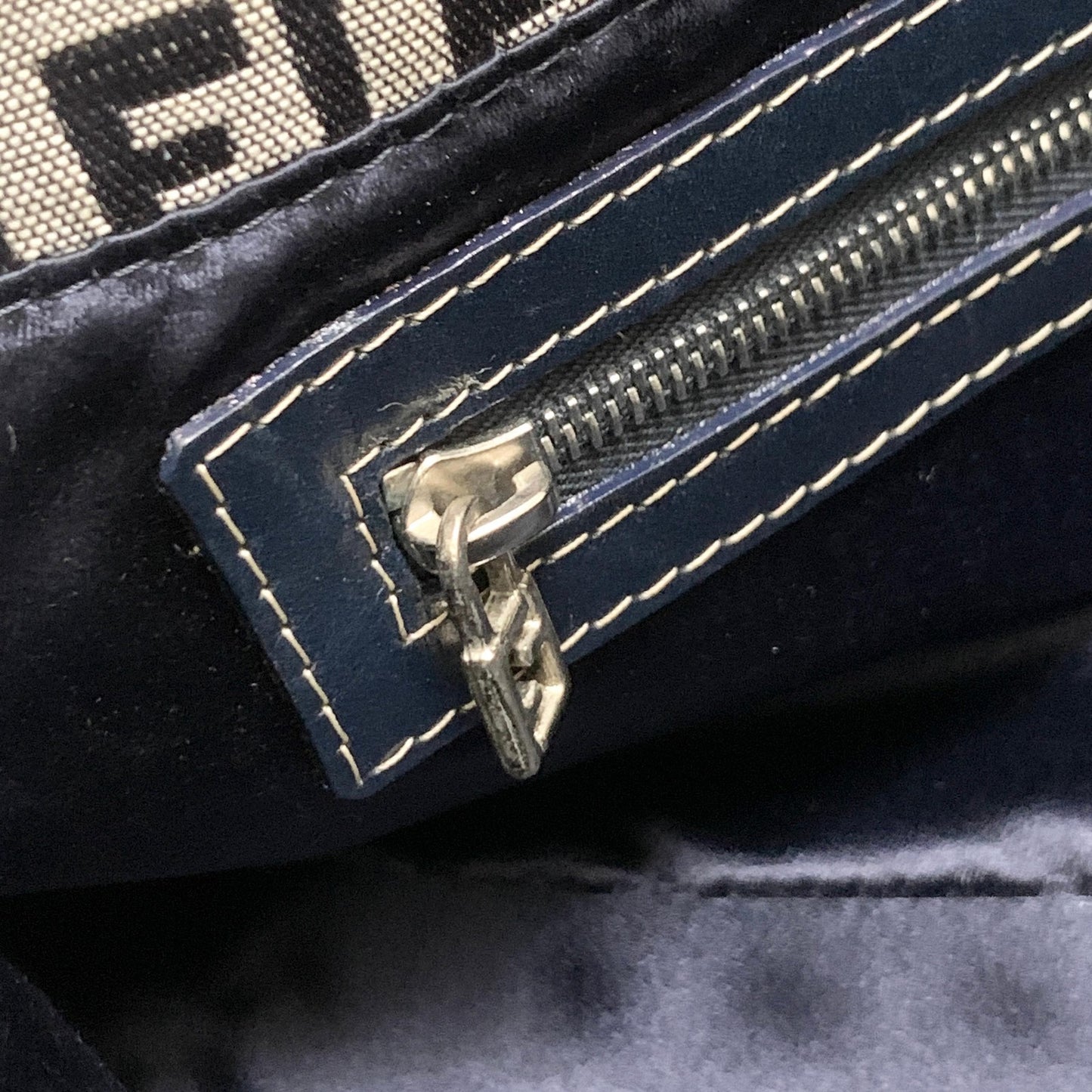 FENDI Bag Baguette FF Zucchino Shoulder Purse Canvas Leather Beige Black Auth