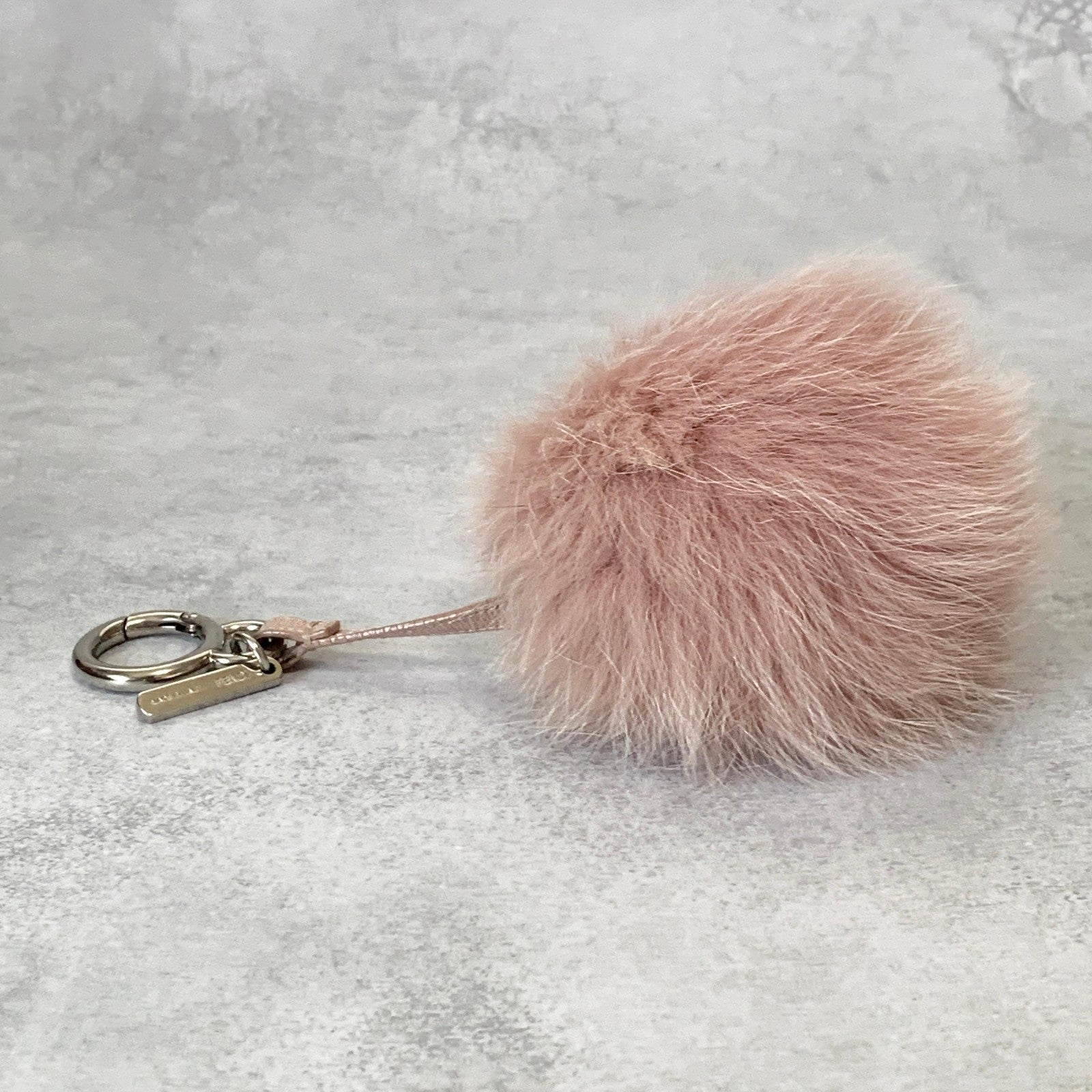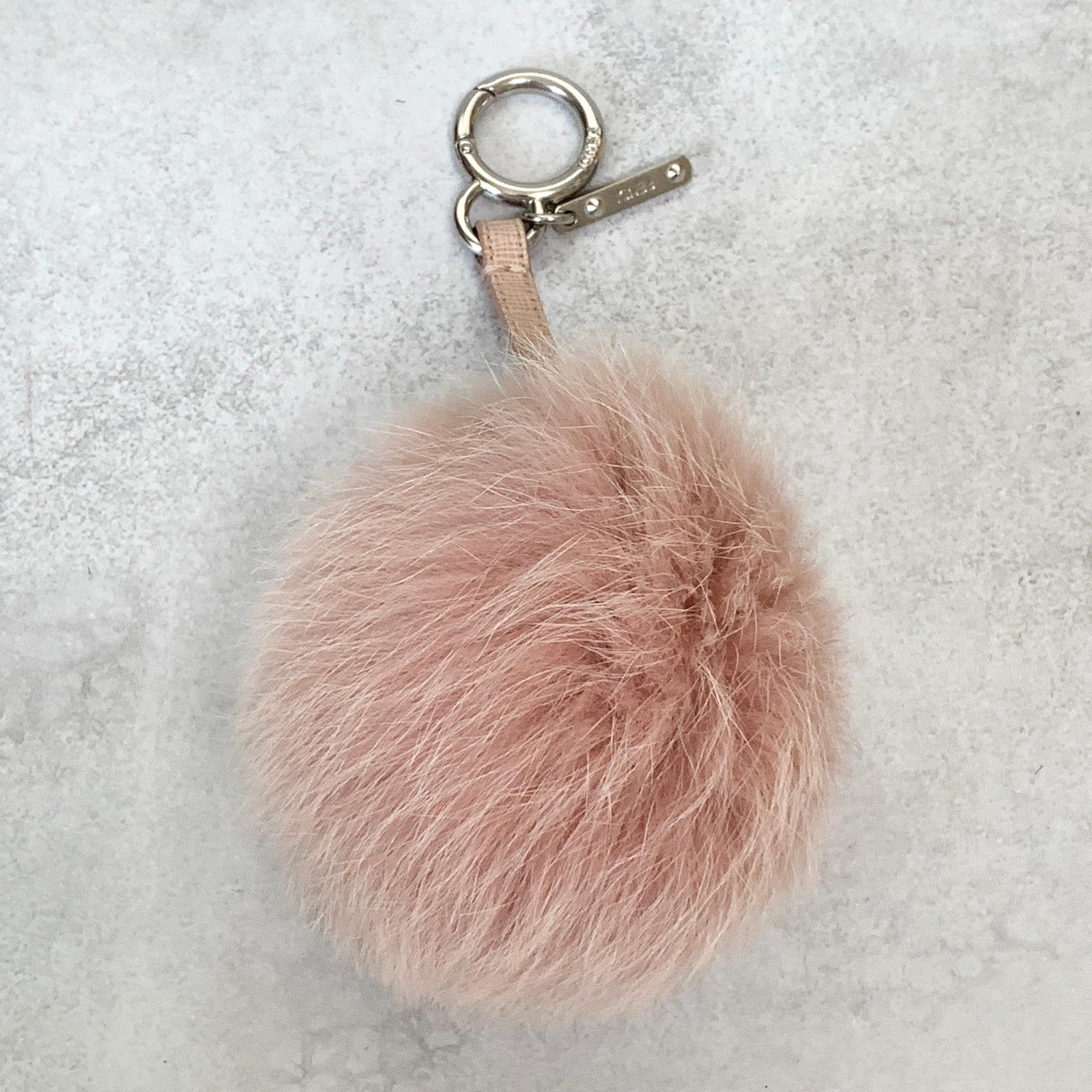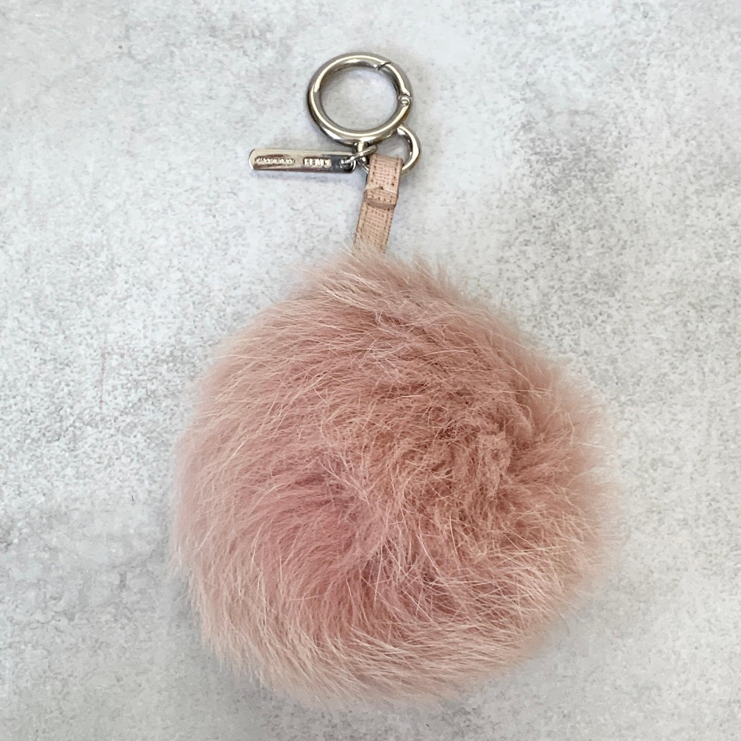 FENDI Bag Charm Logo Key Holder Strap Leather Fur Pink Silver Used Authentic