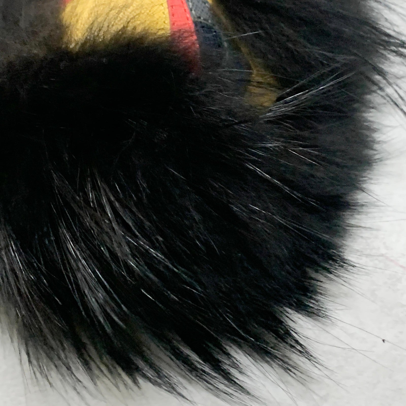 FENDI Bag Charm Monster Key Holder Strap Fur Leather Black Yellow Used Authentic