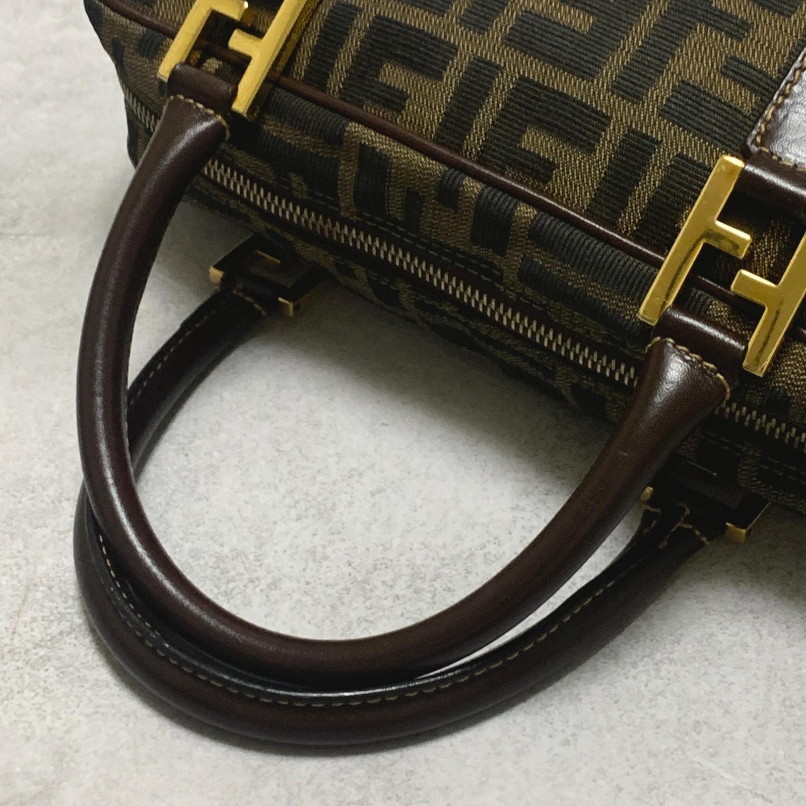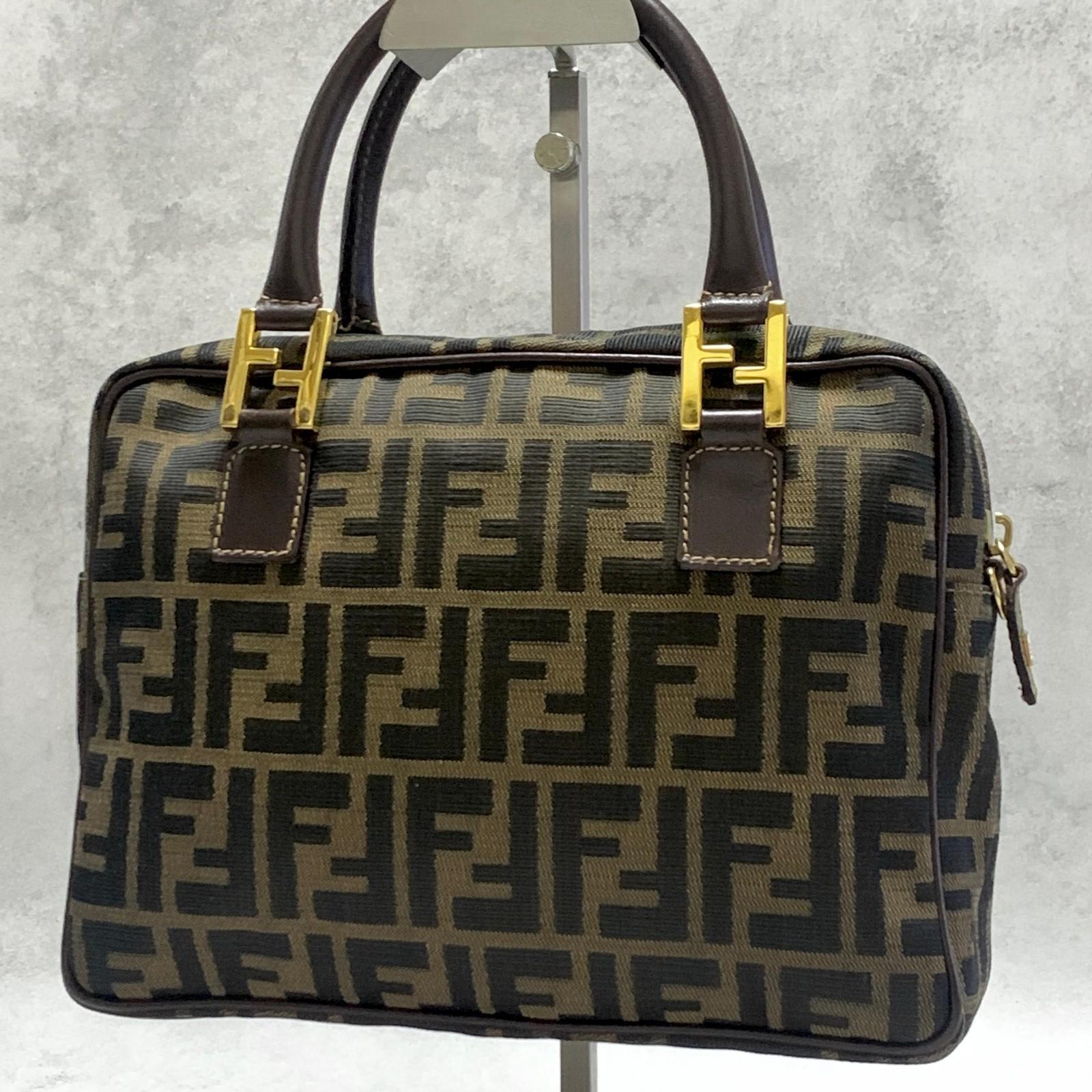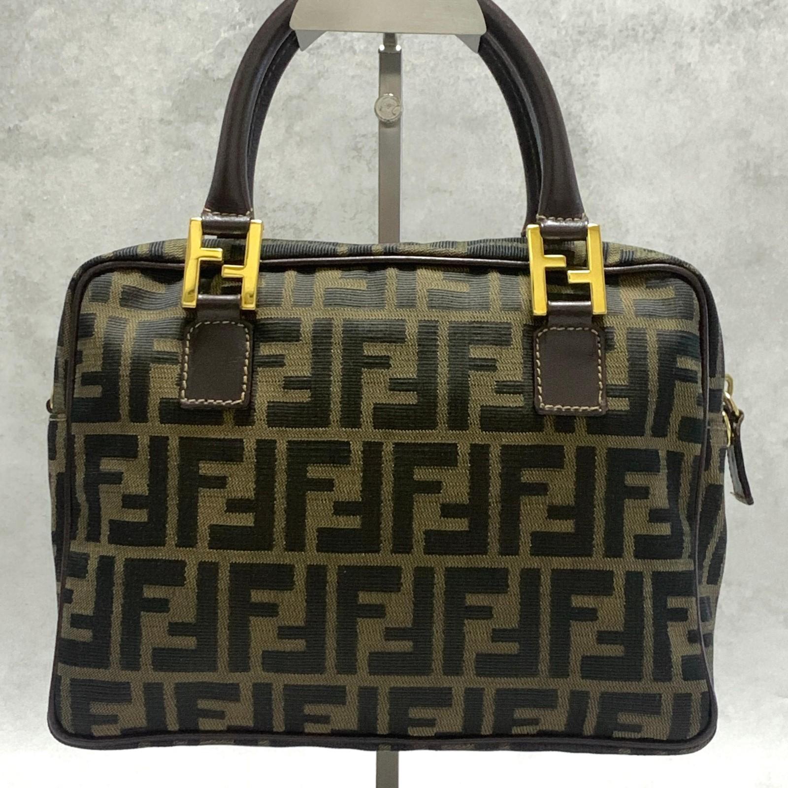 FENDI Bag FF Zucca Hand Tote Purse Canvas Leather Brown Gold Used Authentic