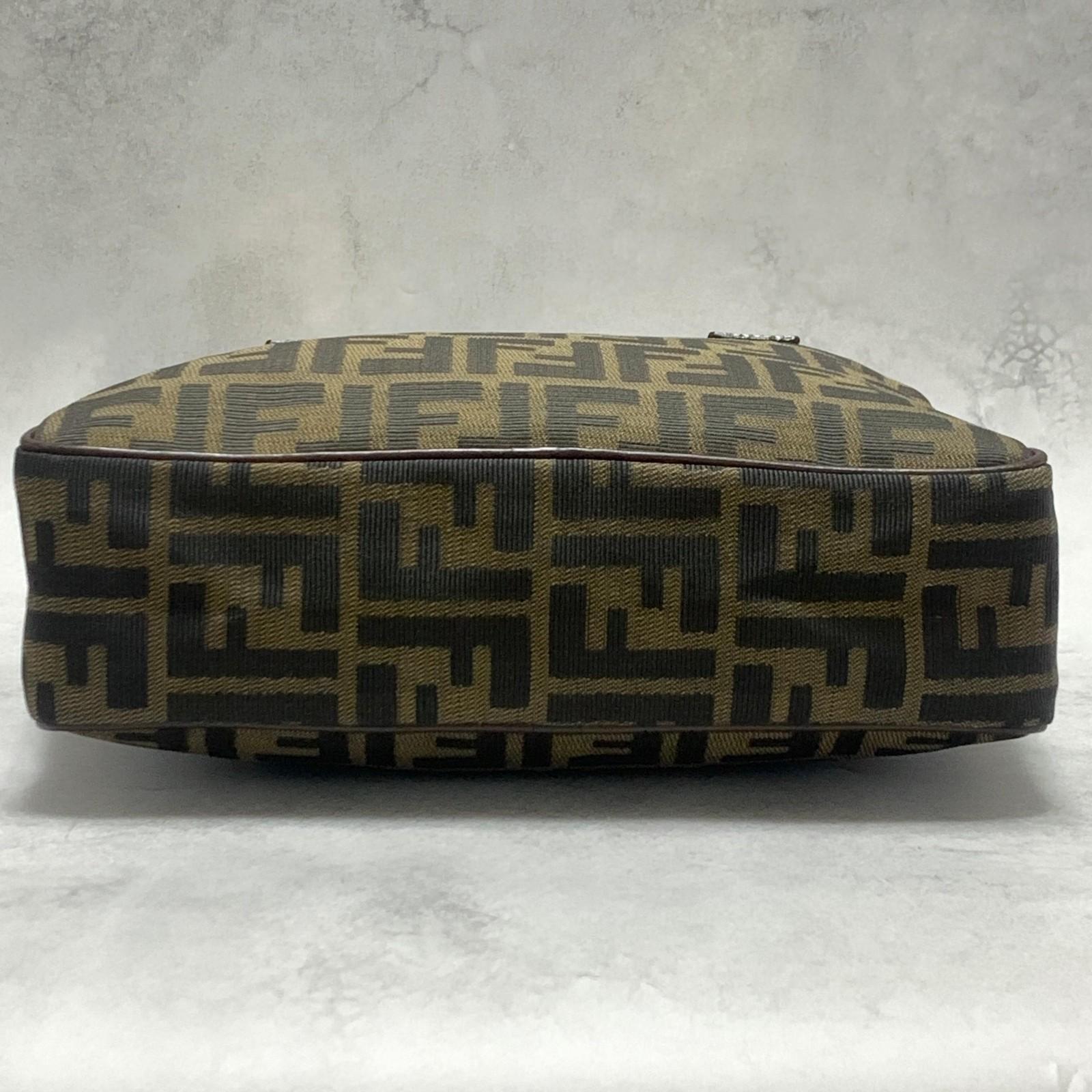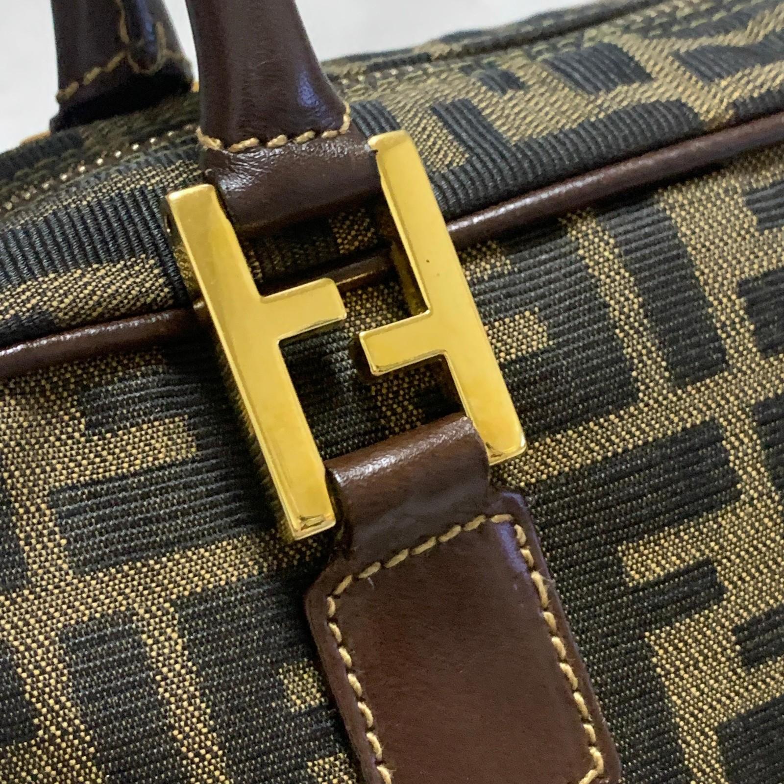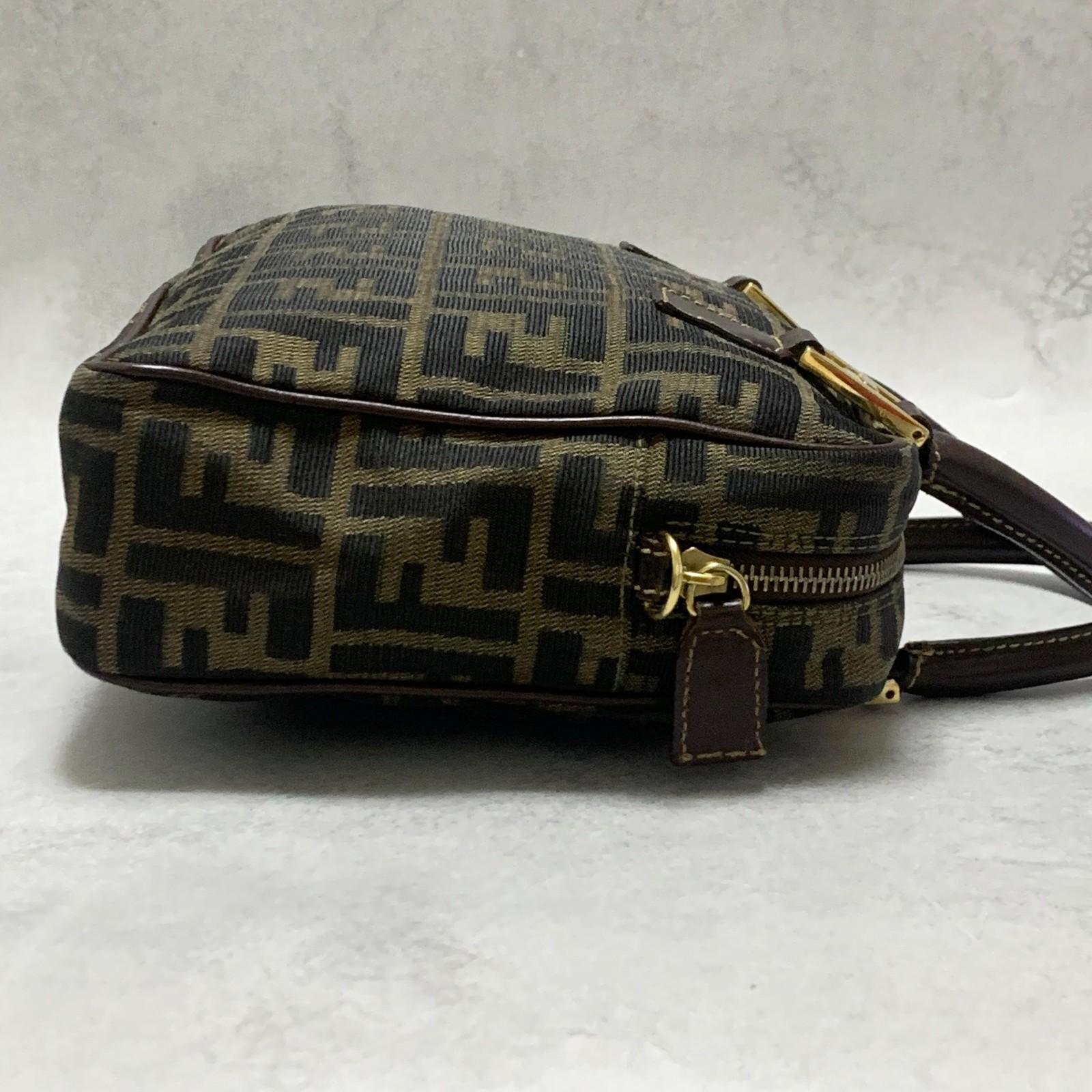 FENDI Bag FF Zucca Hand Tote Purse Canvas Leather Brown Gold Used Authentic