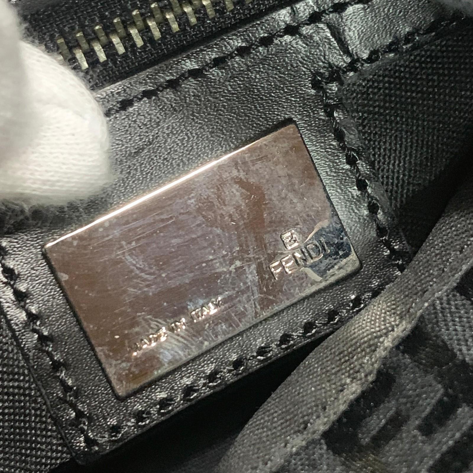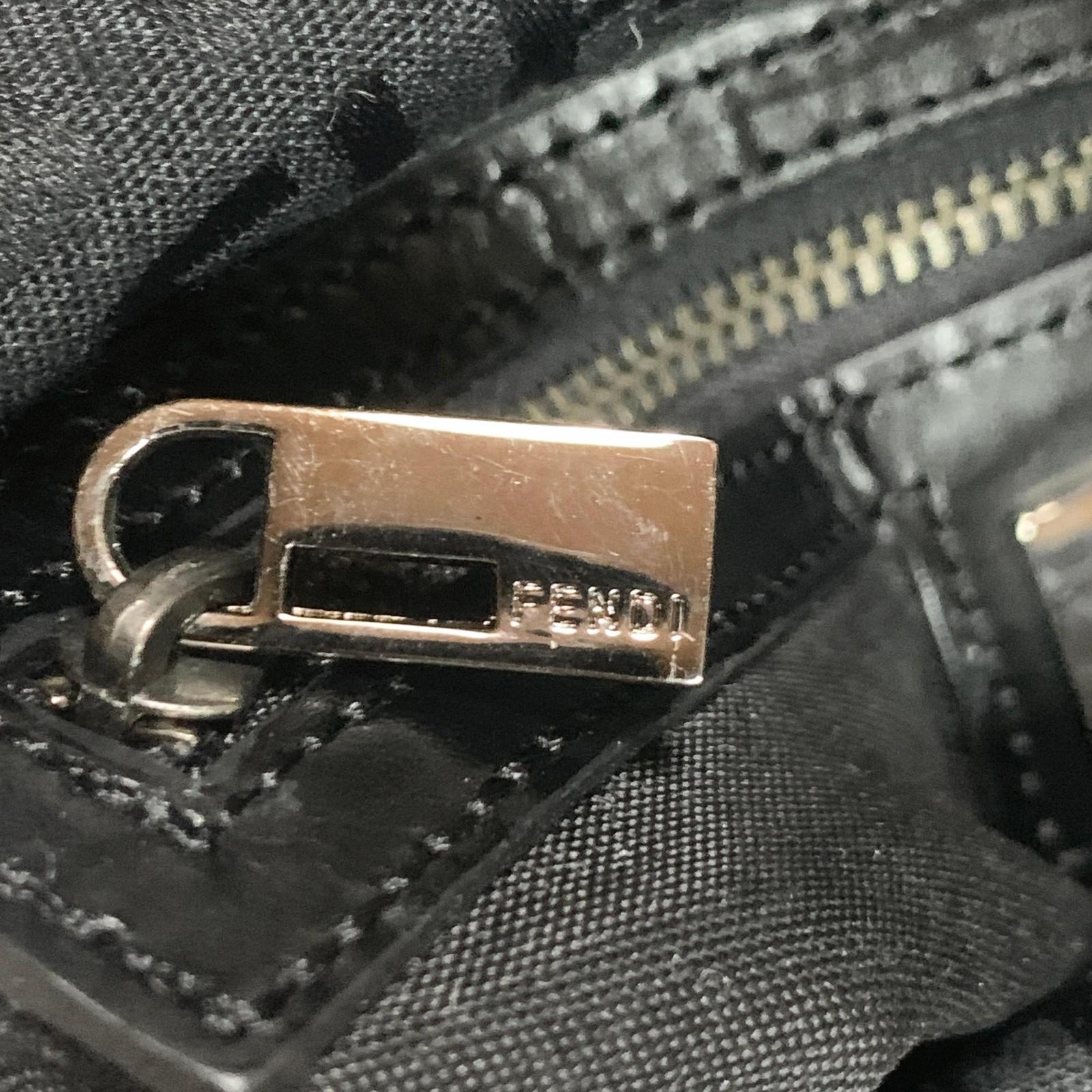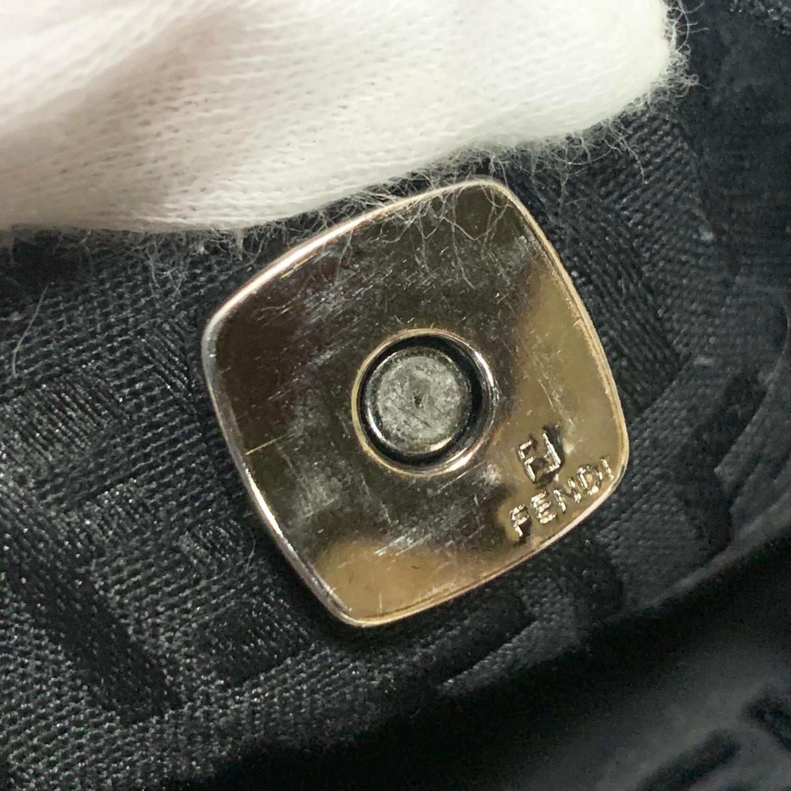 FENDI Shoulder Bag Handbag Purse Zucchino Canvas FF Black Silver Used Authentic