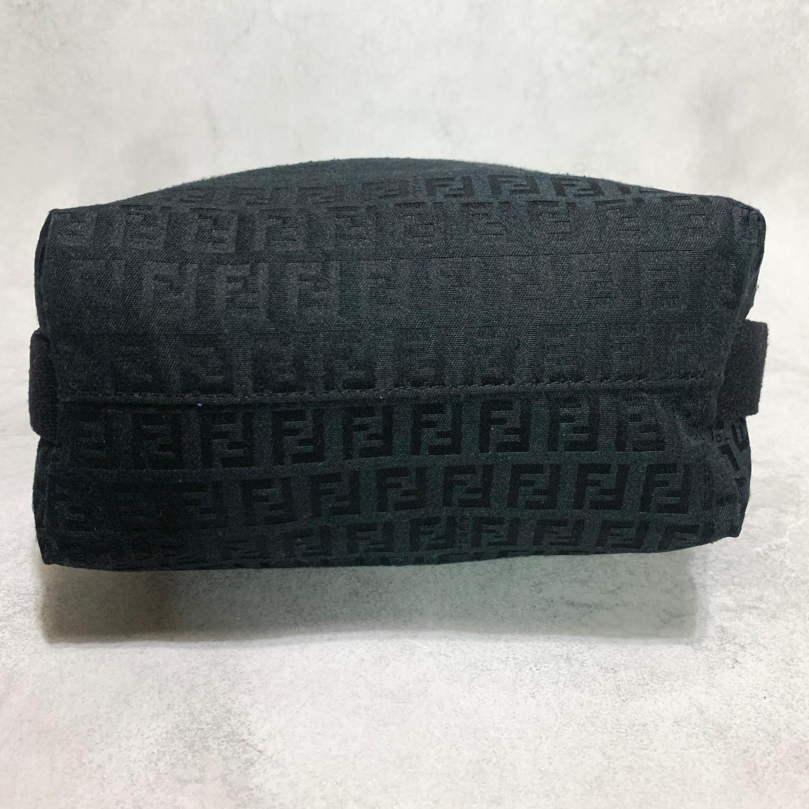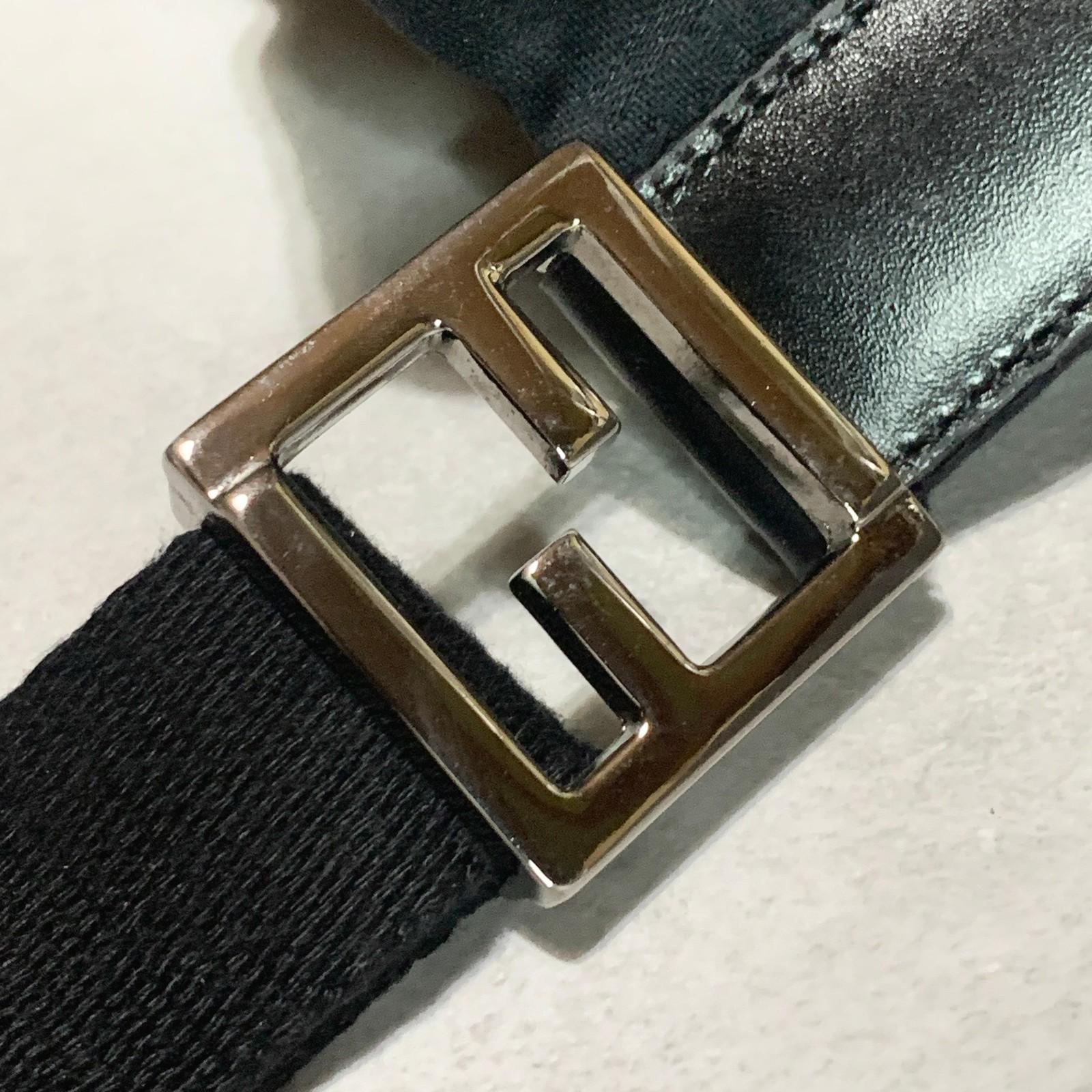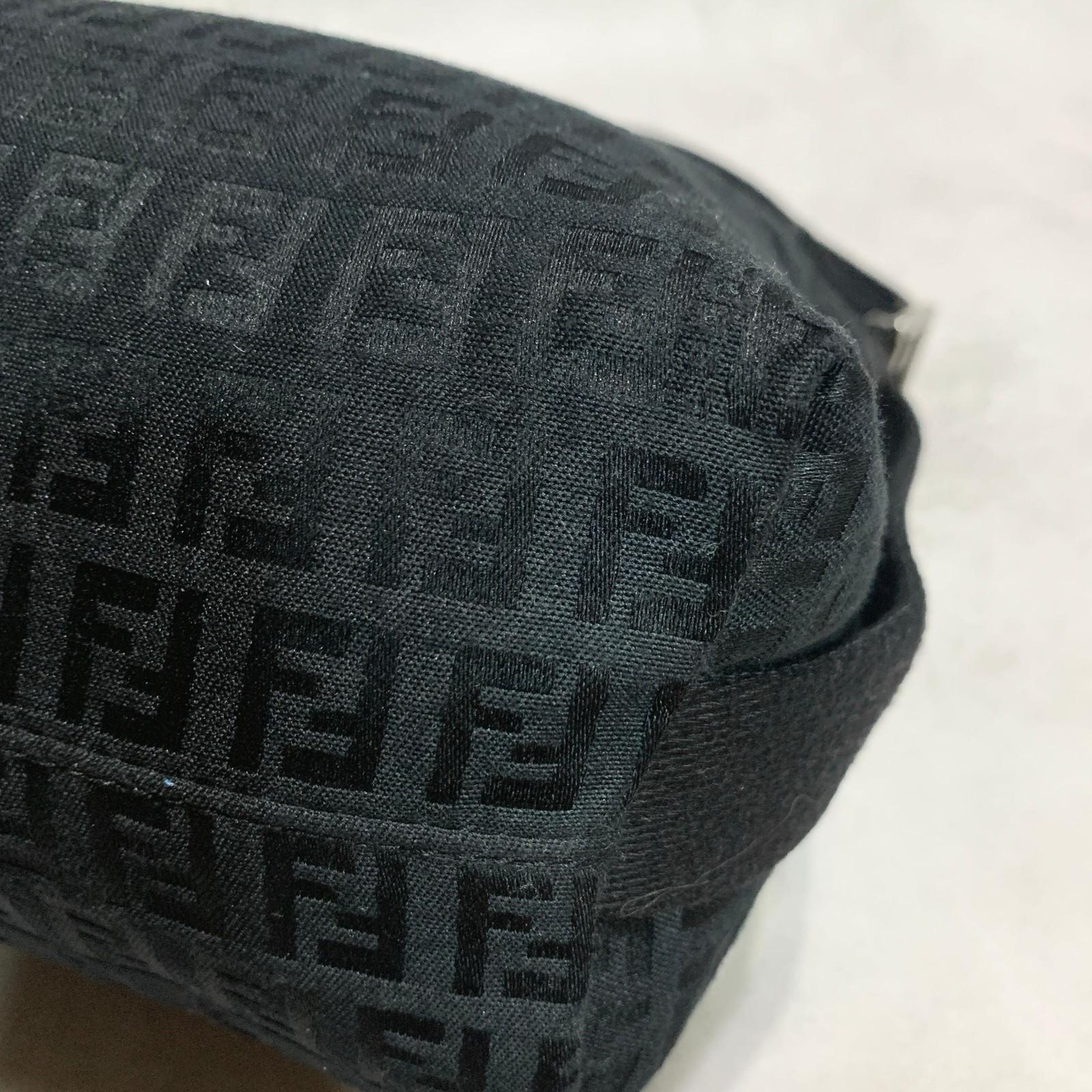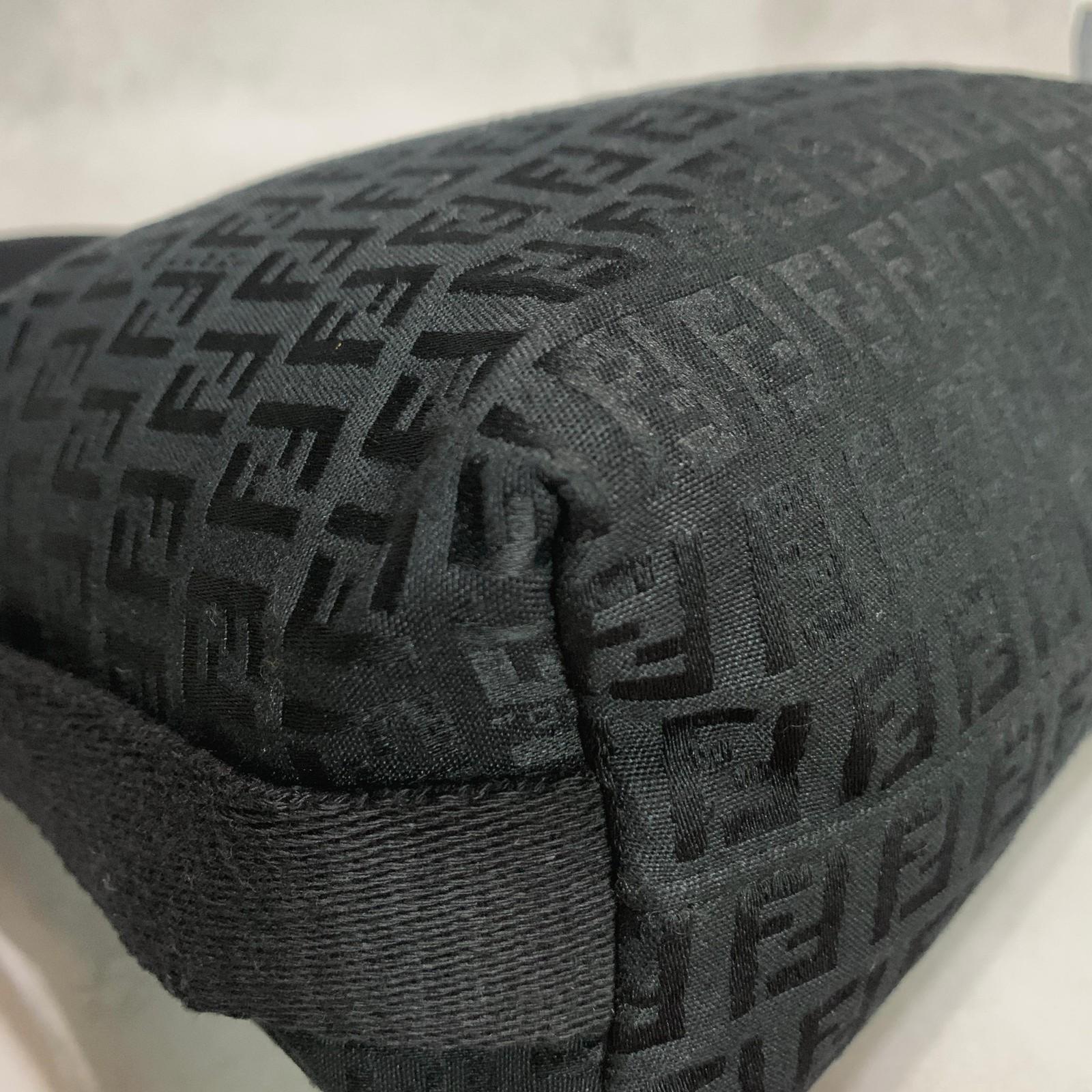 FENDI Shoulder Bag Handbag Purse Zucchino Canvas FF Black Silver Used Authentic